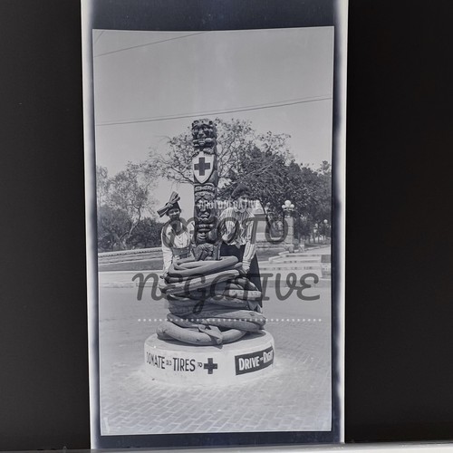 - Vtg Photo Negative Red Cross Tire Donation 1920s Two Women Totem Pole Texas