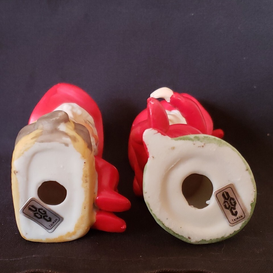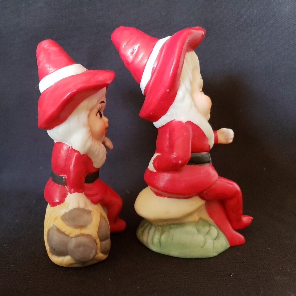 Vtg Red Pixie Elves Figurine Set 2 Red Ceramic Toadstool UCGC Christmas Taiwan
