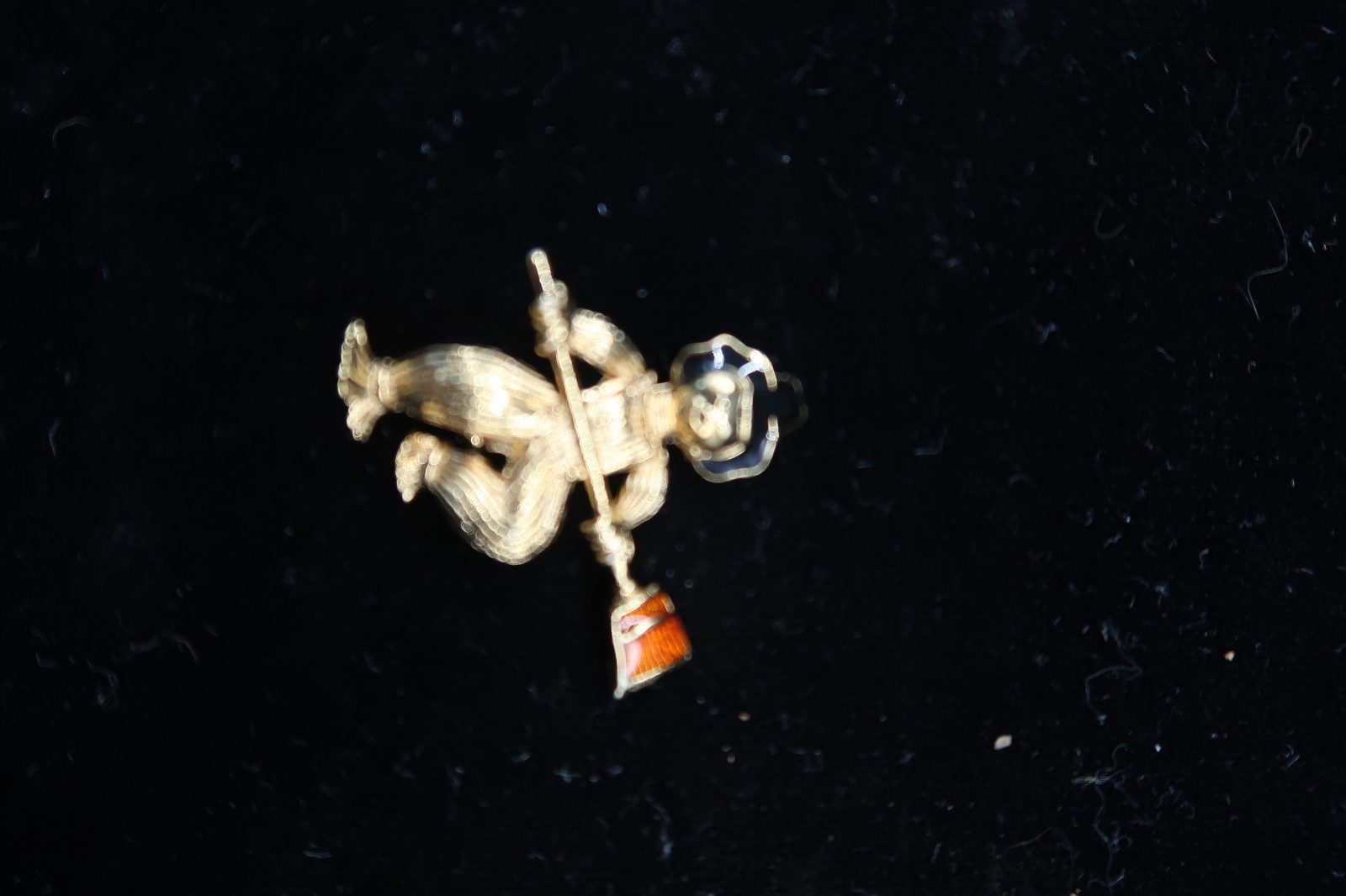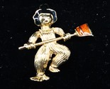 Vtg Scarecrow Halloween Brooch Pin Gold Tone Broom Witch Hat Orange Black Avon
