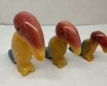- Vtg Set Of 3 MarbeToucan Bird Figurine Tropical Yellow, Teal & Red Carved Stones