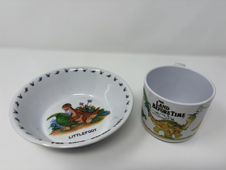 - Vtg UCS 80s 90s The Land Before Time Melamine Dinosaur Bowl 6” & cup set