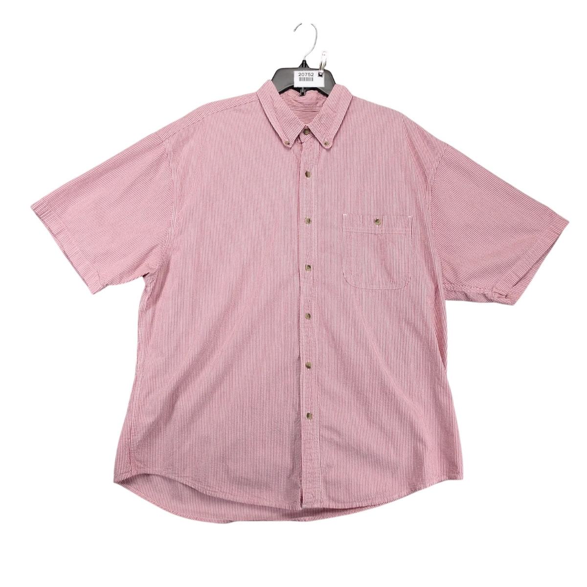 Vtg Y2K Eddie Bauer Red Striped Seersucker Button Down Shirt Men's XL Short Slv
