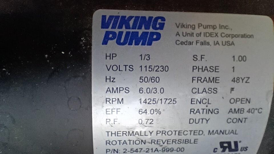 - Vulcan Hart 00-417792-00008 Pump Motor 1PH 115/230V 1/3HP 6.0/3.0 Amps Cont Duty