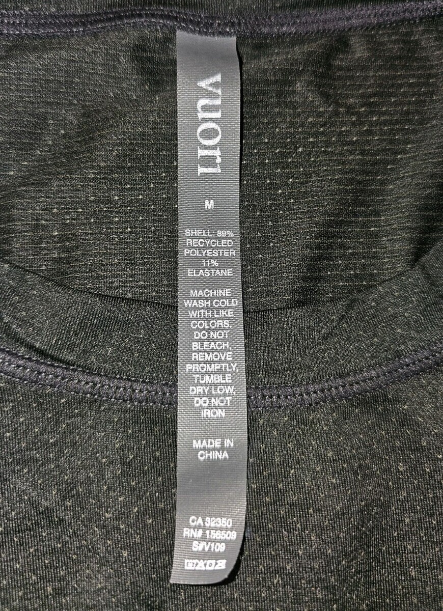 The Vuori Tradewind Performance Pocket Short Sleeve T-Shirt in Black, size medium, is a versatile and high-quality garment suitable for outdoor activities and everyday wear. Made from a comfortable polyester blend jersey fabric, this T-shirt features a classic crew neck and logo accents on the front. With its regular fit and convenient pockets, it is perfect for summer, fall, and spring seasons. Machine washable for easy care, this shirt is a reliable choice for those looking for a stylish and functional addition to their wardrobe.