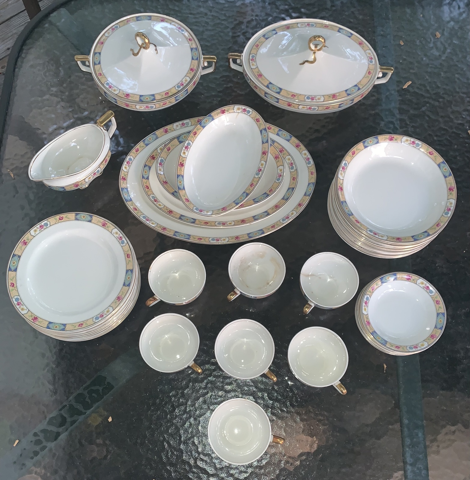 W.H. Grindley The Victory 46pc China Set England 1911 Floral Gold Trim