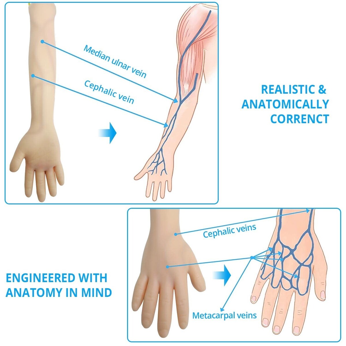 WELLiSH IV Practice Arm Infusion Model, Venipuncture Training Model Phlebotomy Practice Kit Injection Blood Drawing Model