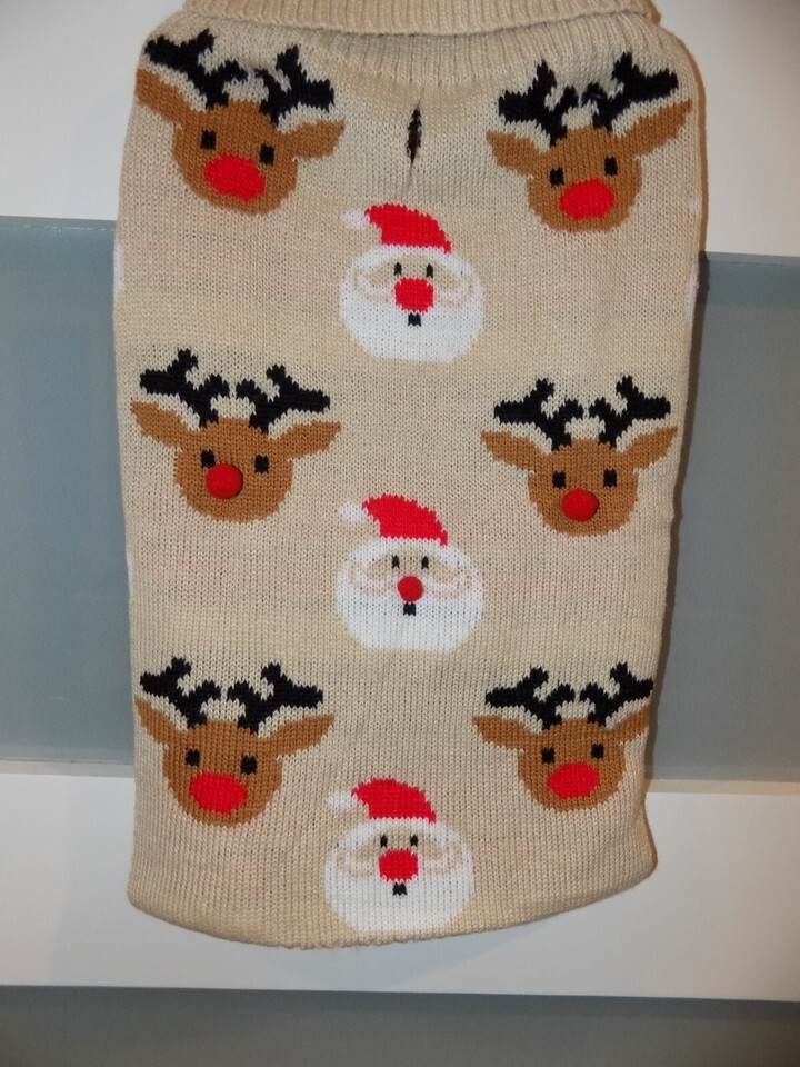- WOOF Reindeer Snowman Beige Knit Sweater Pet Sweater Size L NEW