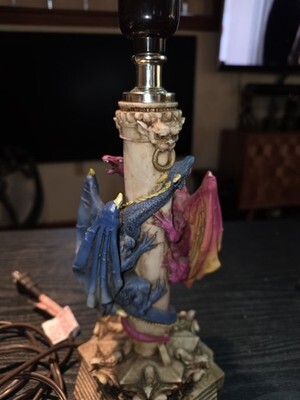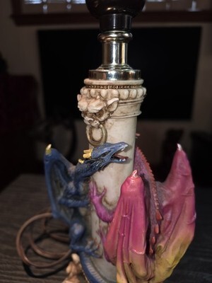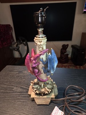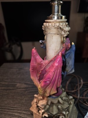 WUI Double Dragon Gargoyle Face Fantasy Figurine Lamp Vintage 1998 READ