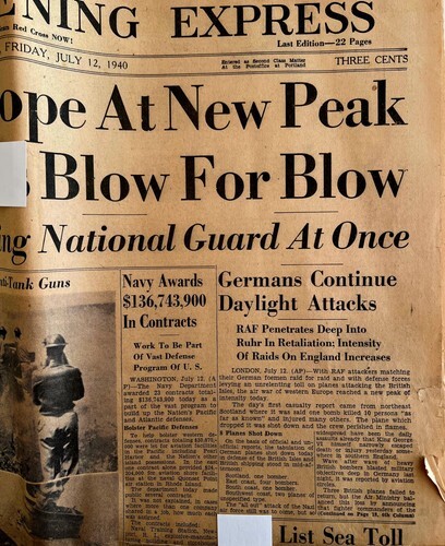 Primary image for WW2 1940 Newspaper Portland Maine Evening Express War In Europe July 12 DWCC17