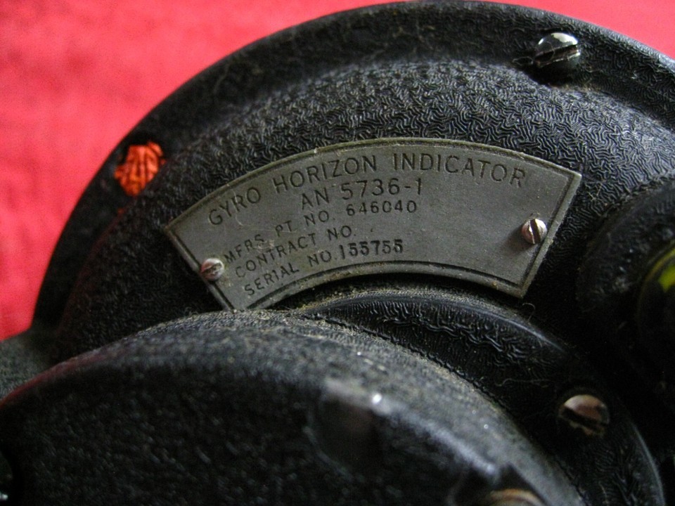WWII vintage Aircraft Gyro Horizon Indicator AN 5736-1 Sperry Pt. No. 646040