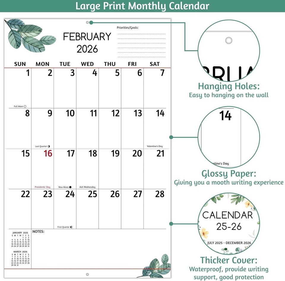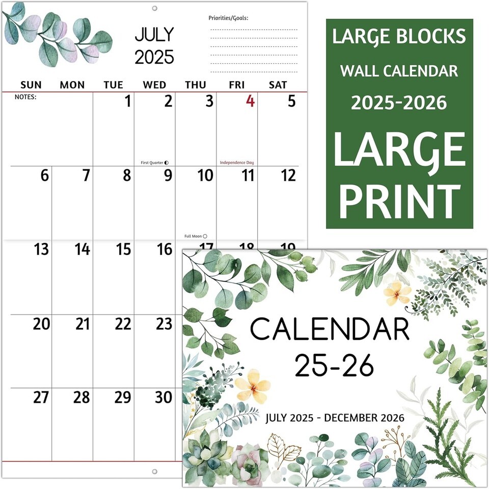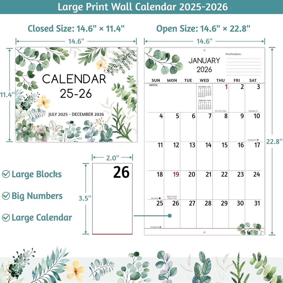 - Wall Calendar 2025-2026 - Large Print Calendar, Jul 2025 - Dec 2026, 14.6 x 22.8
