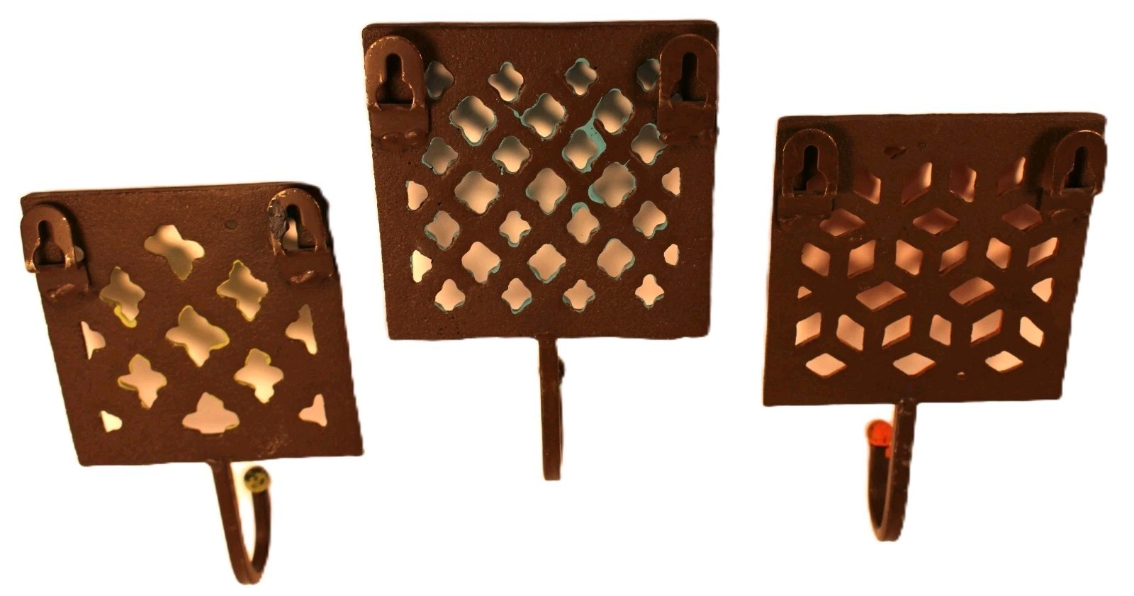 3 pc set of decorative hand-painted cast iron wall hooks in a rustic chic multicolor design
