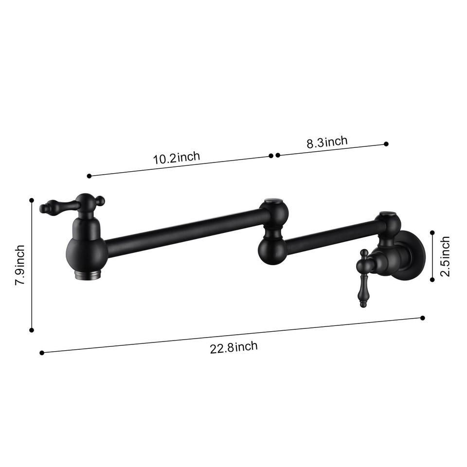 The wall-mounted pot filler faucet is not only beautiful but also practical. It has 360 rotation and folding functions, which can meet your cooking needs whether it is filling water or cleaning pots, and is foldable when not in use, saving kitchen space. The dual handles are simple to operate and provide easy on/off control to prevent dripping. The surface is specially treated to resist corrosion and not easily oxidized. Make your kitchen look cleaner and tidier.