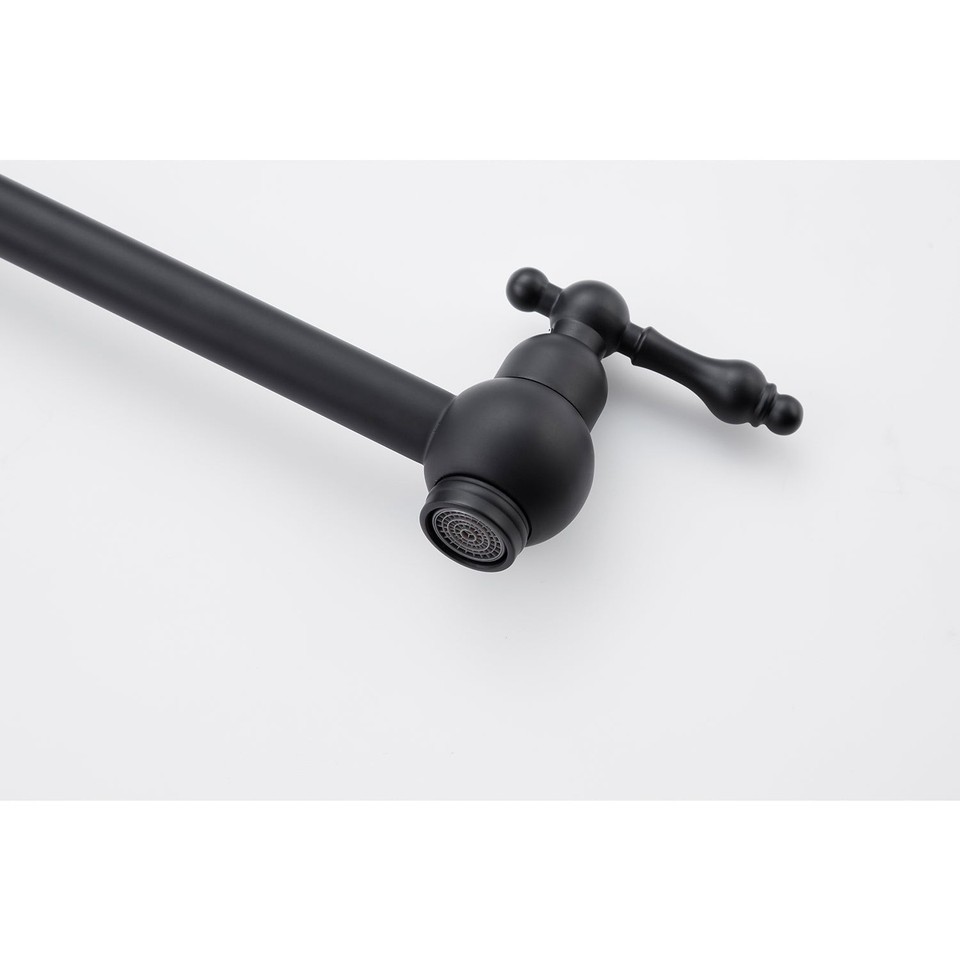 The pot filler faucet features a free-swivel arm design, making it easier to fill any pot on the stovetop and for easier cleaning. When not in use, the arms can be easily folded to save space.