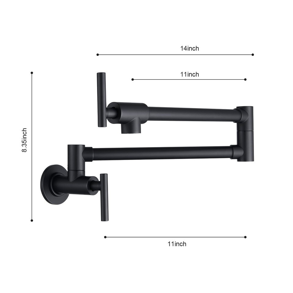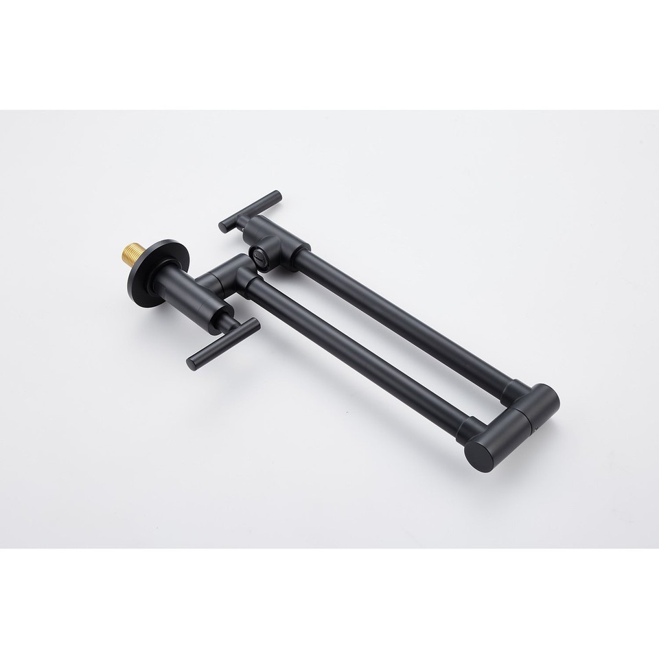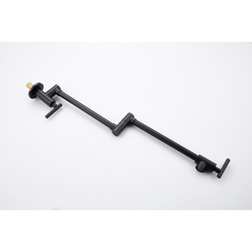 The wall-mounted pot filler faucet is not only beautiful but also practical. It has 360 rotation and folding functions, which can meet your cooking needs whether it is filling water or cleaning pots, and is foldable when not in use, saving kitchen space. The dual handles are simple to operate and provide easy on/off control to prevent dripping. The surface is specially treated to resist corrosion and not easily oxidized. Make your kitchen look cleaner and tidier.