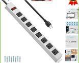 Wall Mountable 8 Outlet Metal Power Strip - 6FT Cord, Overload Switch Included
