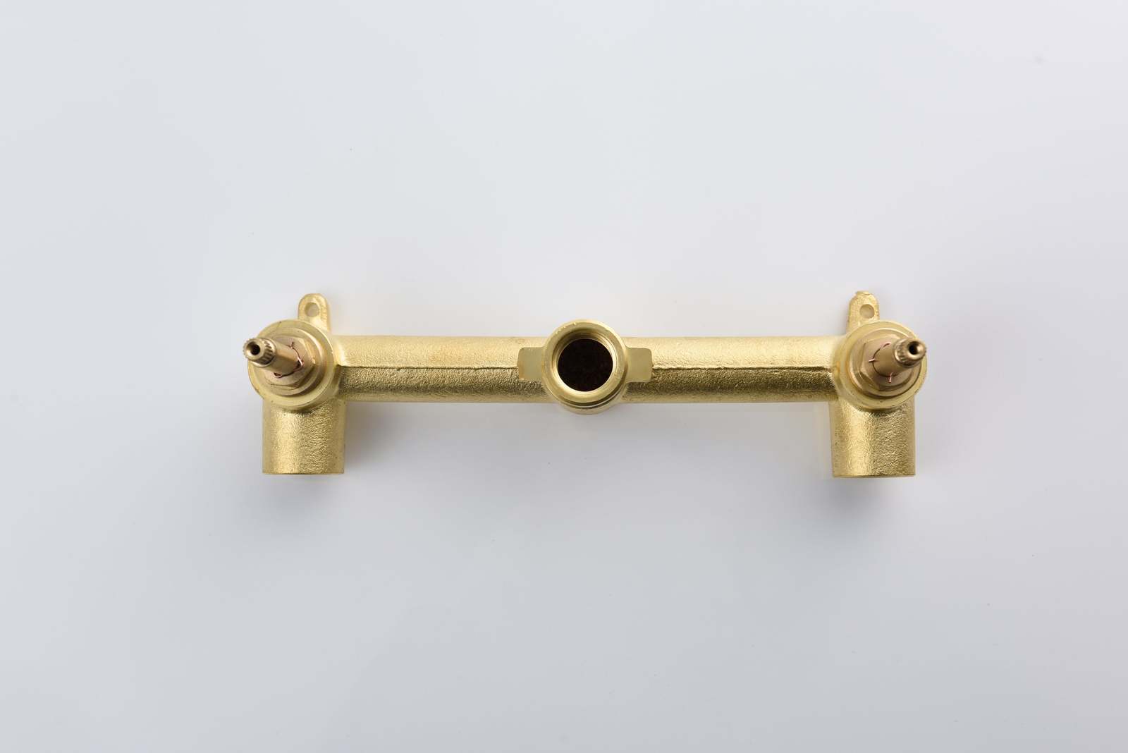 This wall tub faucet with two classical cross design handles for effortless water flow and temperature control.This wall mounted gold bathroom faucet will be one of the most eye-catching creations in your bathroom.