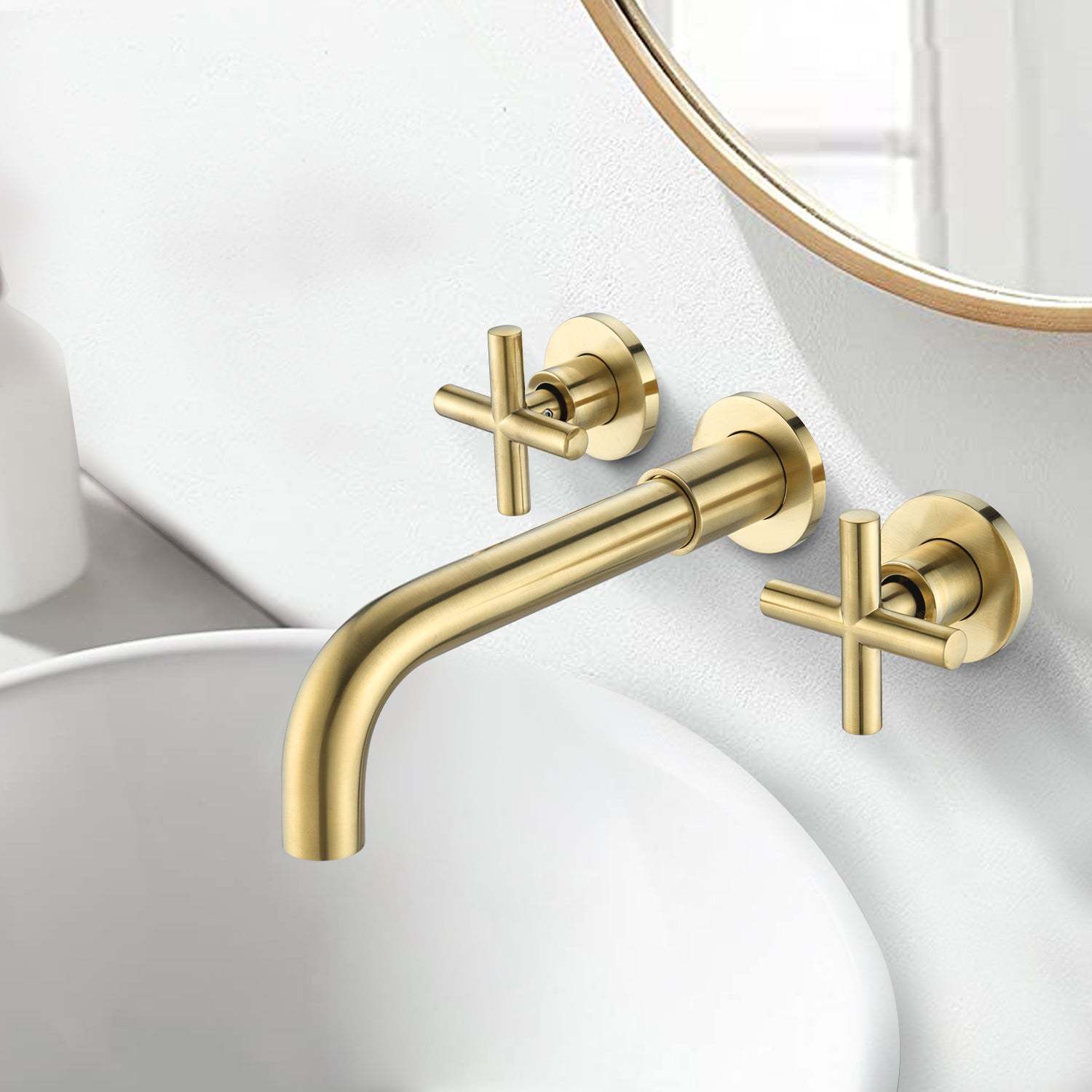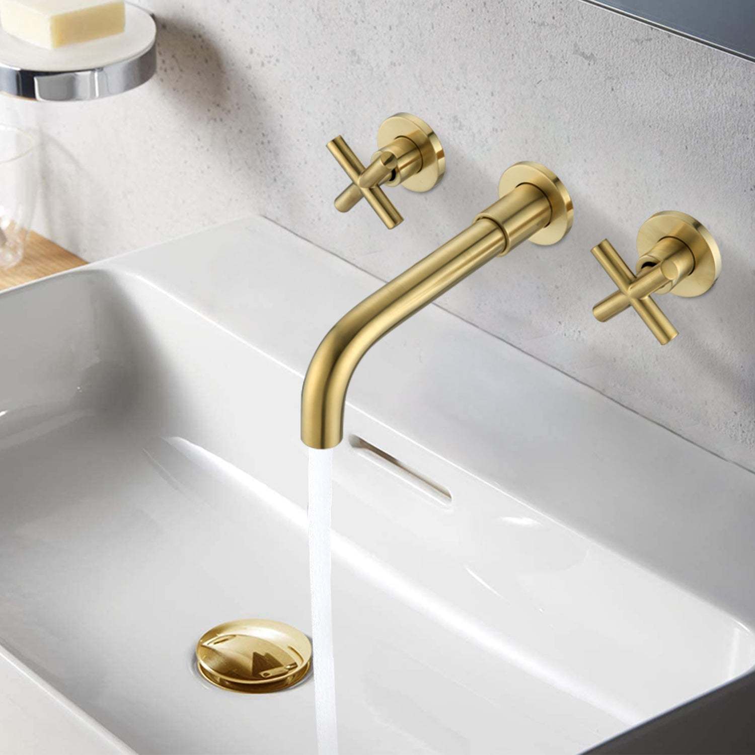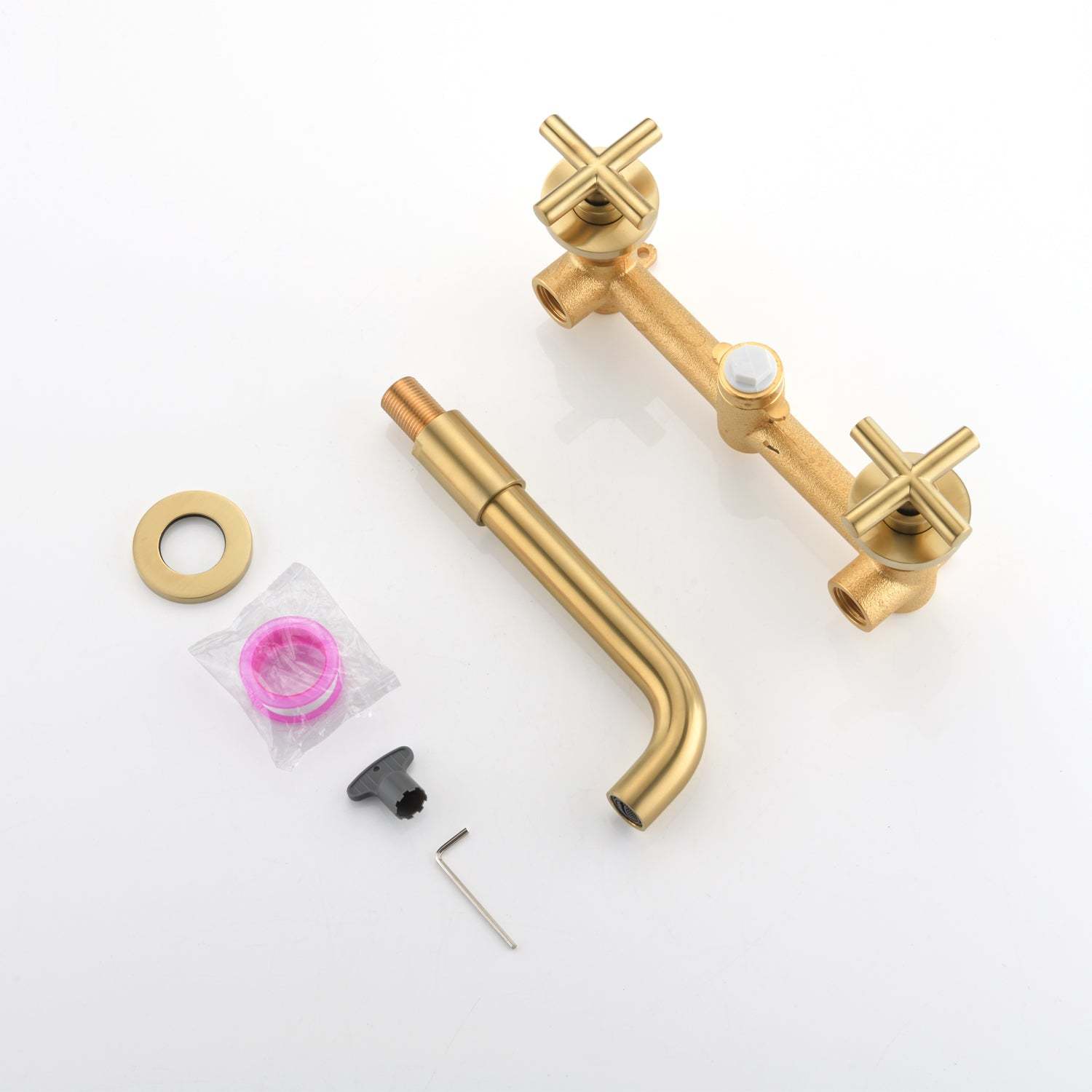 Sturdy solid brass construction, drip-free brass cartridge, electroplated brushed gold finish, ensure the durability of this wall mounted bathroom faucet.