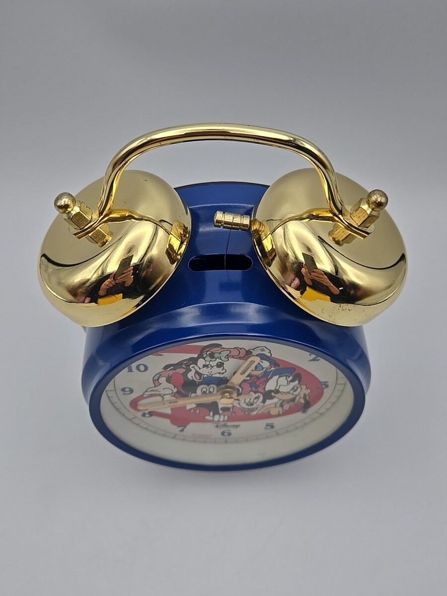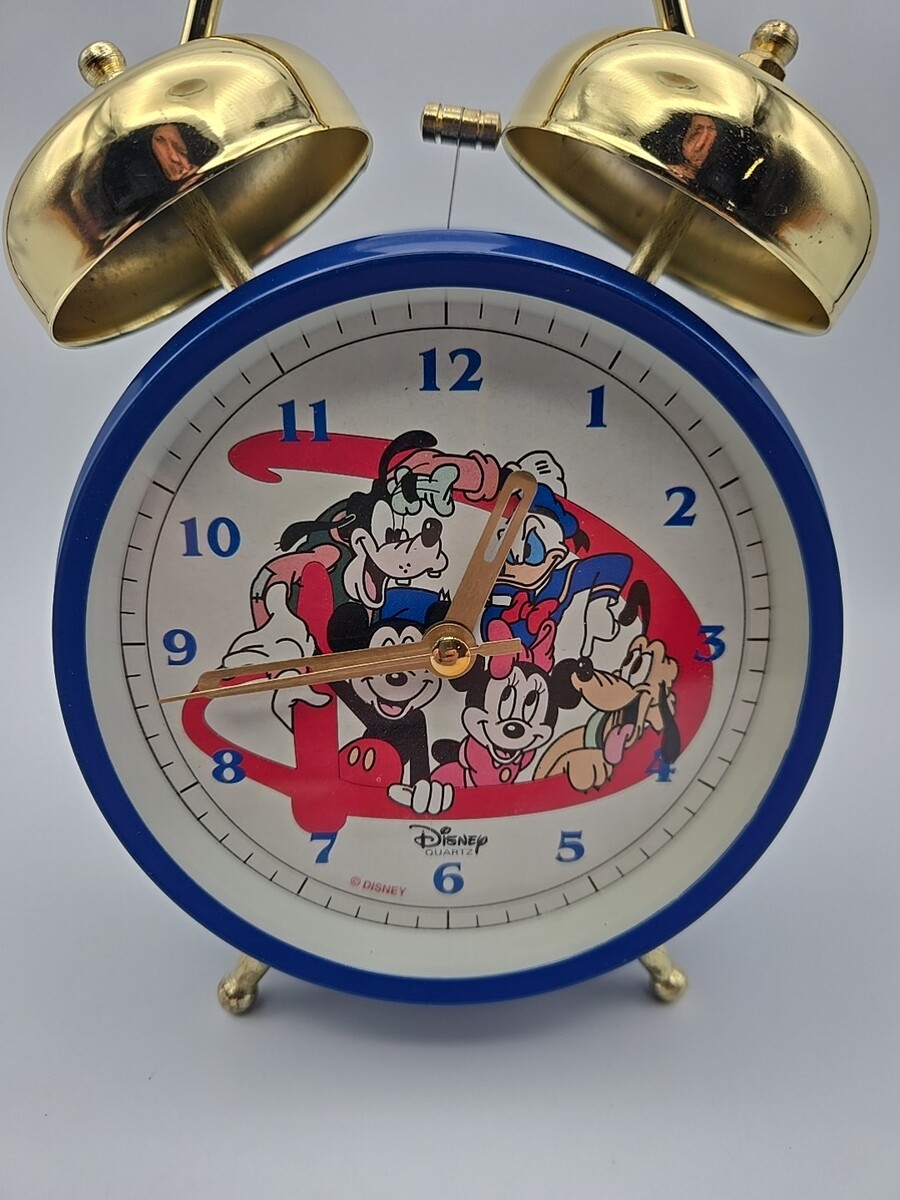 Walt Disney World Mickey Blue Twin Bell Analog Alarm Clock. Battery Operated