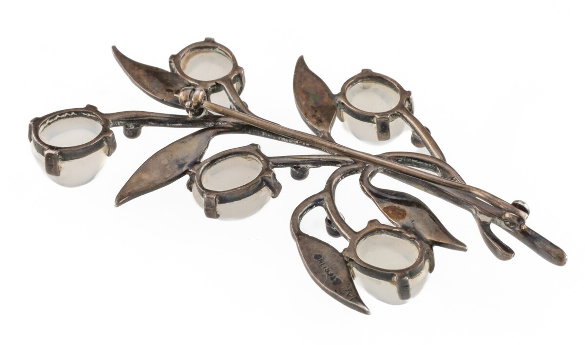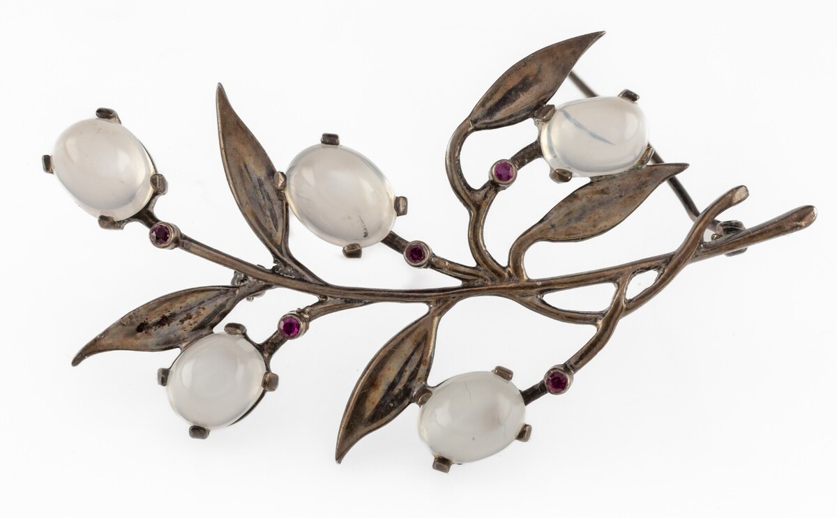Walter Lampl Ruby Moonstone Olive Zweig Brosche in Sterling Silber 68 mm lang