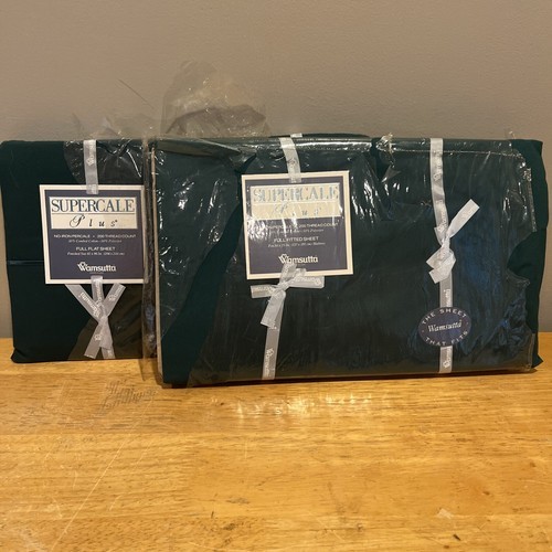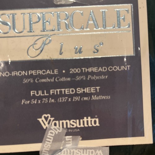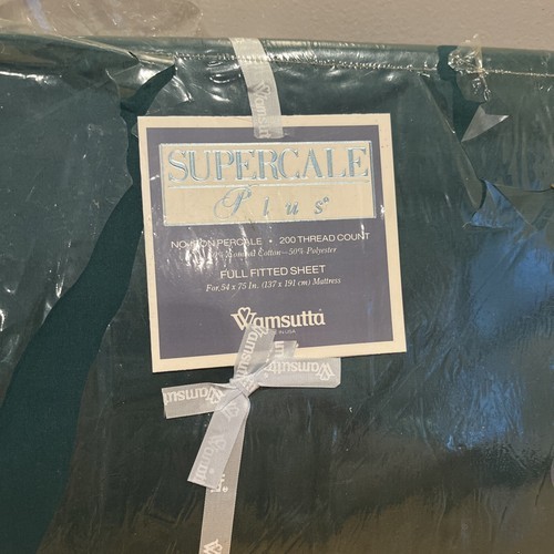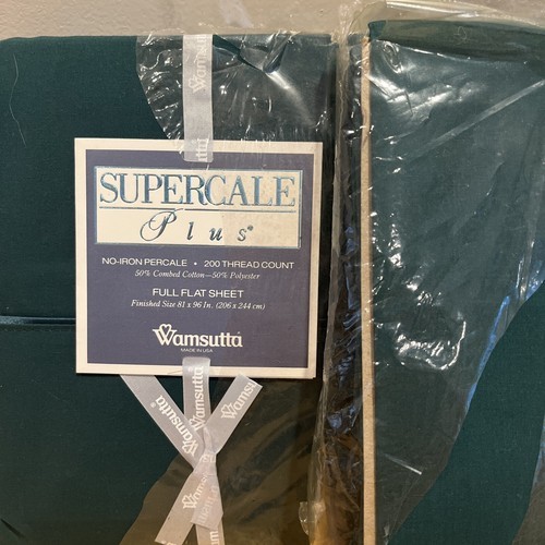 - Wamsutta Supercale Full Dark Green Fitted Flat Sheet 200 TC Cotton Blend Vintage
