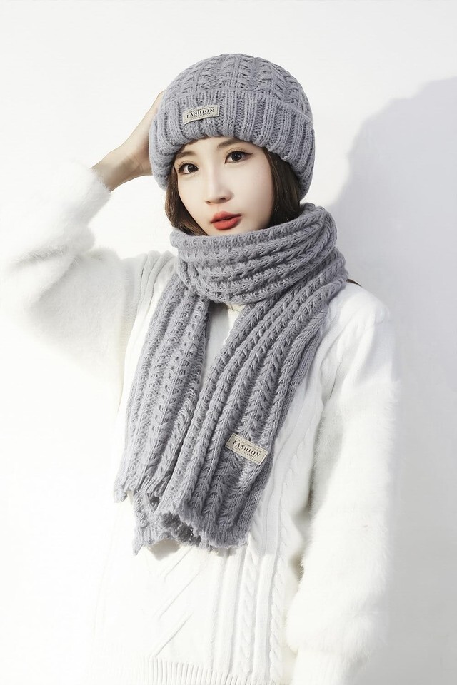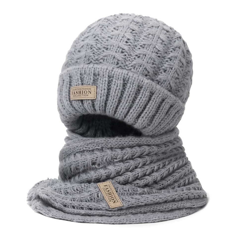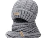 Wander Agio Women's Wool Knit Beanie Scarf Set Grey 5pcs
