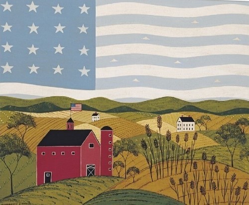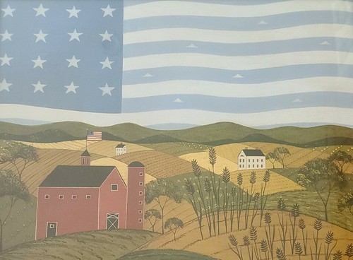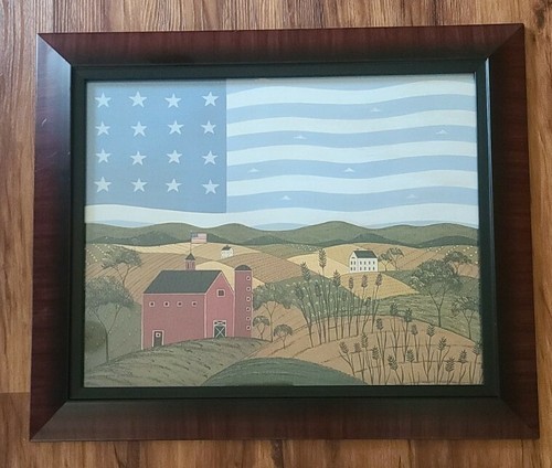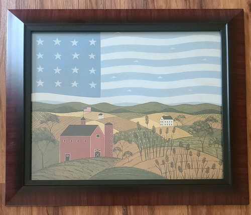 This Sale is for One (1) Warren Kimble Framed Print Amber Waves of Grain Folk Art Print Framed print measures approximately 20.5" tall x 24.5" wide Brown/black frame Triangular ~ wall mount ~ hook hanger rings ~ on the backside of print Painting on canvas of a countryside with an American flag flying on top of a barn as well as in the sky America's best-known folk artist ~ Warren Kimble is nationally recognized for art that conveys warmth and history, as well as sophistication and craftsmanship His success can be found in the simple and honest themes that resonate with art lovers seeking to celebrate our country With a skilled hand and a grandfatherly wisdom ~ Warren Kimble has painted scenes from rural Vermont for more than 50 years Today ~ his paintings are among our nation?s most recognized pieces of Americana Incorporating animals ~ tabletop games and Old Glory with images from farms ~ small towns and seashores ~ Kimble creates folk art that calls to everyone Kimble also offers whimsical paintings inspired by clever plays on words and modern one-word posters with an old-timey touch Print frame are in good ~ pre-owned condition Please view photos for a good description of this item Thank you!