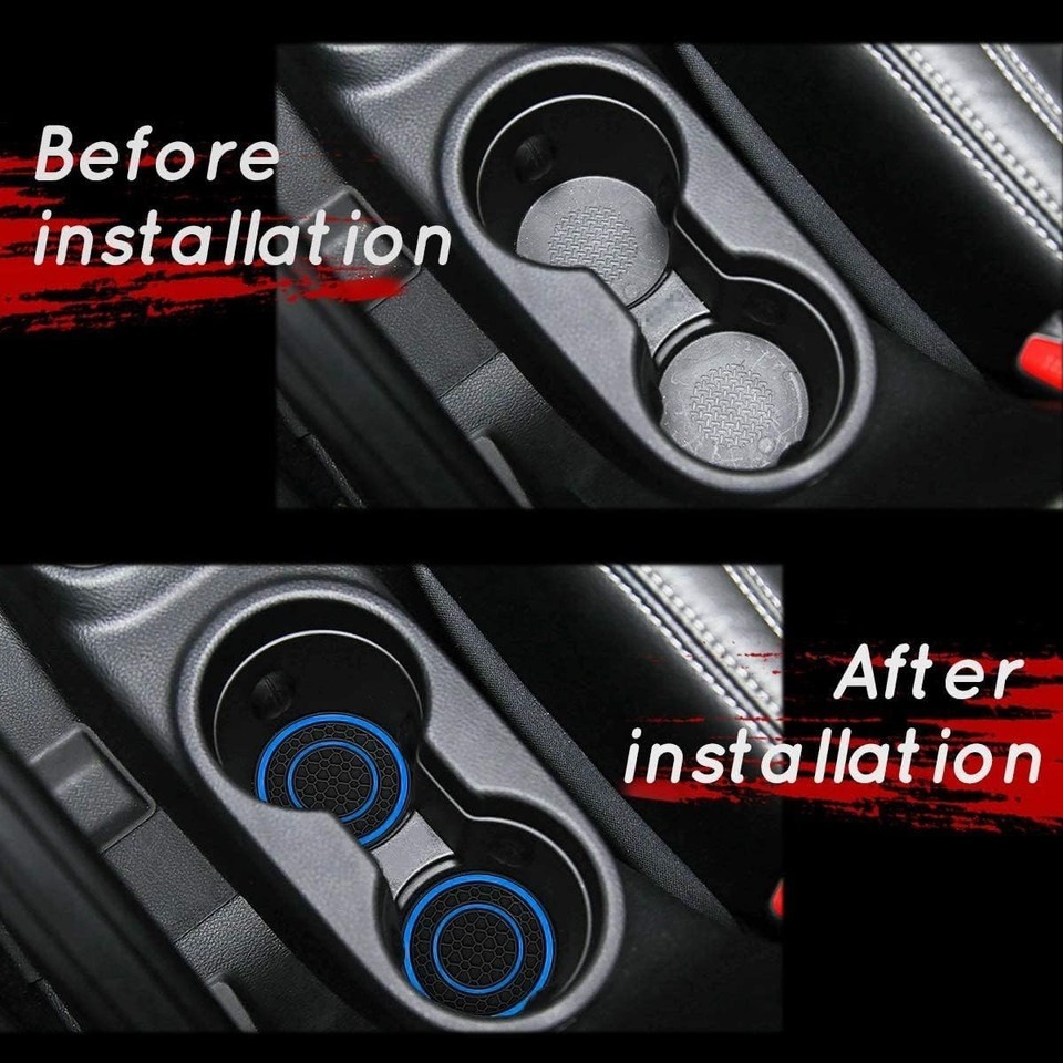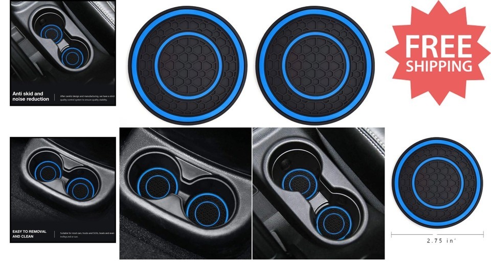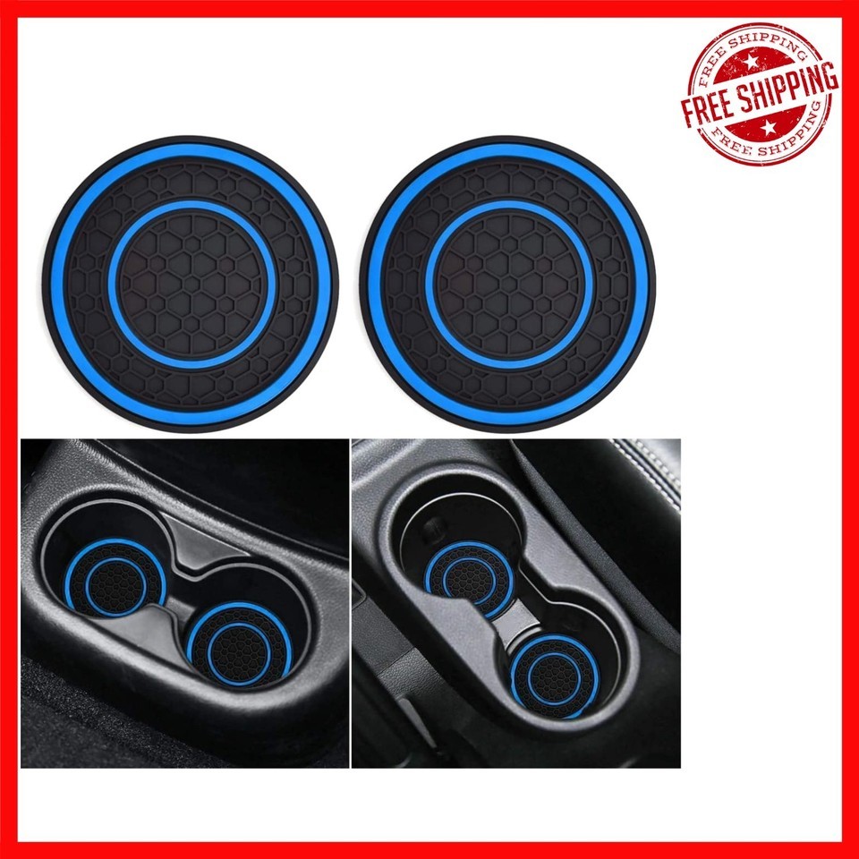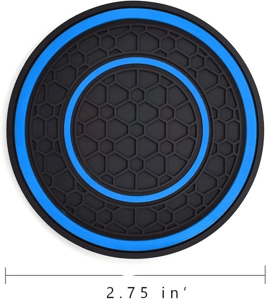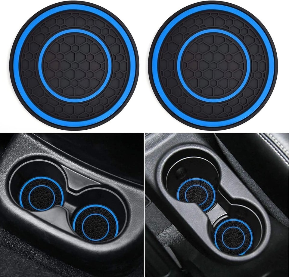 - Washable Blue Car Cup Holder Coasters - Universal Fit Silicone Inserts, 2 Pack