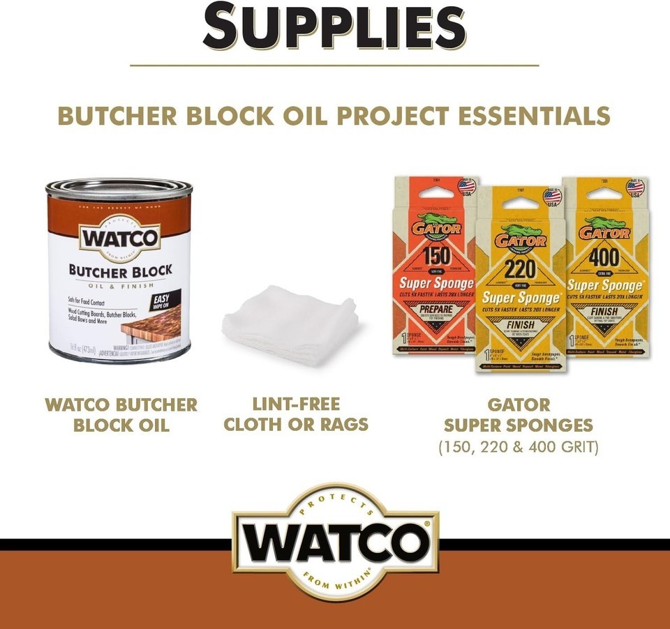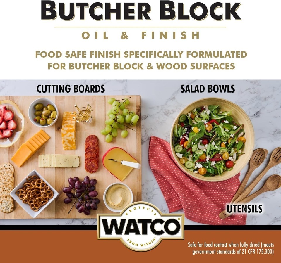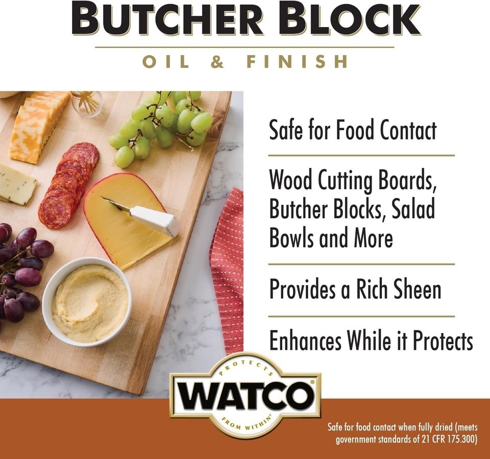 - Watco Butcher Block Oil & Finish Wood Conditioner, 16 oz, Clear, Food-Safe, N...