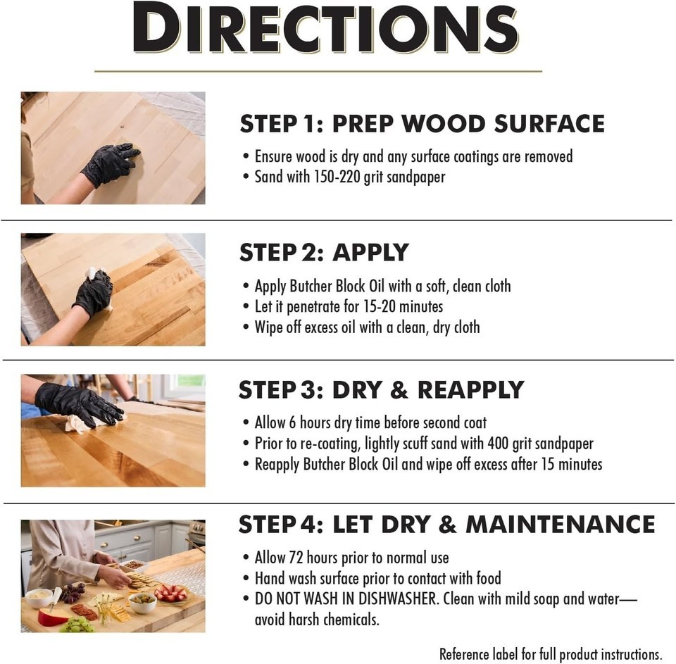 Transform your butcher blocks, cutting boards, and wooden kitchen essentials into stunning, safe treasures with Butcher Block Oil Finish. Elevate your kitchen's elegance while ensuring practical functionality. Order yours today to protect your investment and enhance your kitchen experience!
