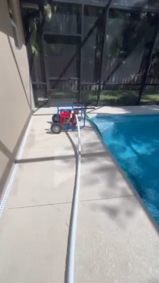 Note: Our High Performance Pump Package (FS-HPSIRP) (See other listings) with 100 feet of fire hose is being used in the picture and video above with a size 14 gpm plastic nozzle (that's included) in the water cannon. The tripod was in the all the way down position (so it didn't shoot water over the house) in this video and it was throwing pool water approximately 90 feet in this picture and video.
