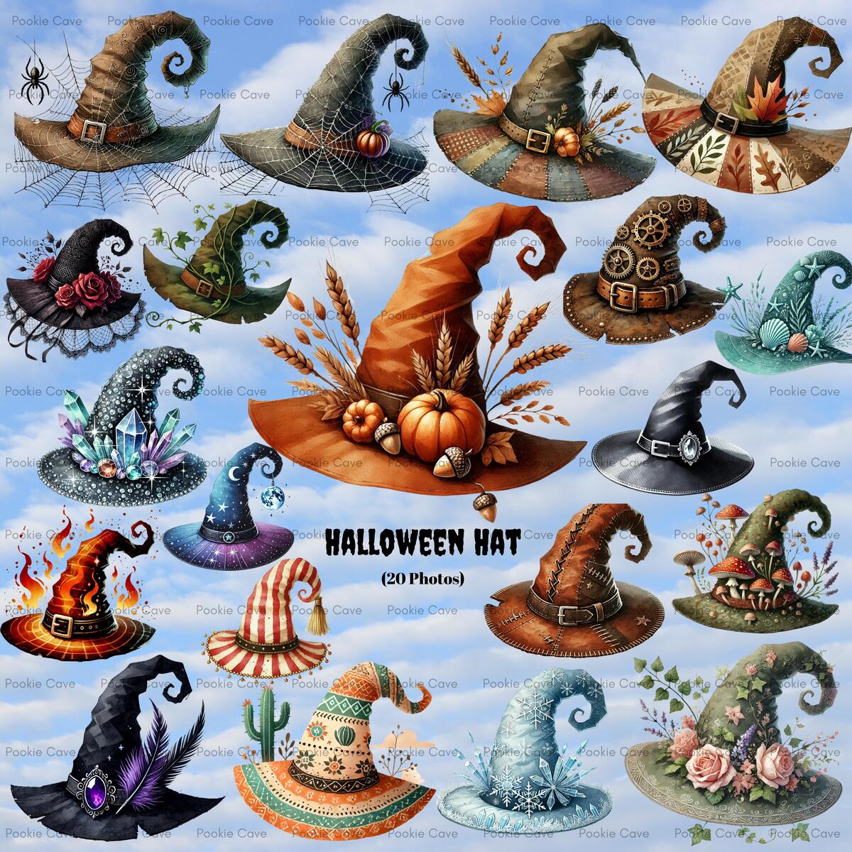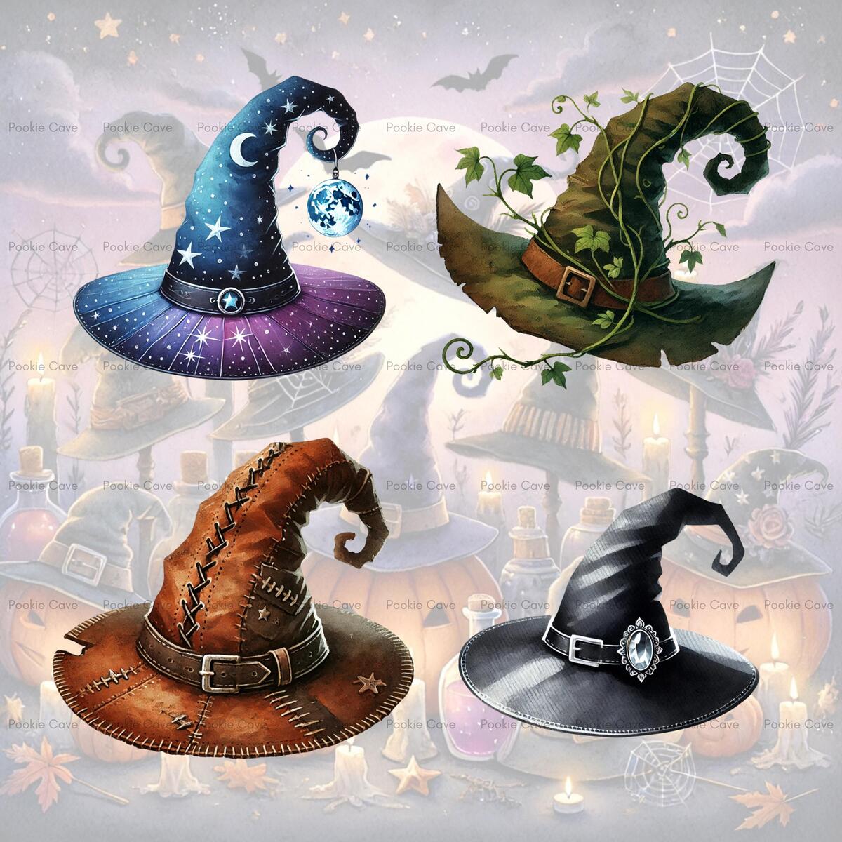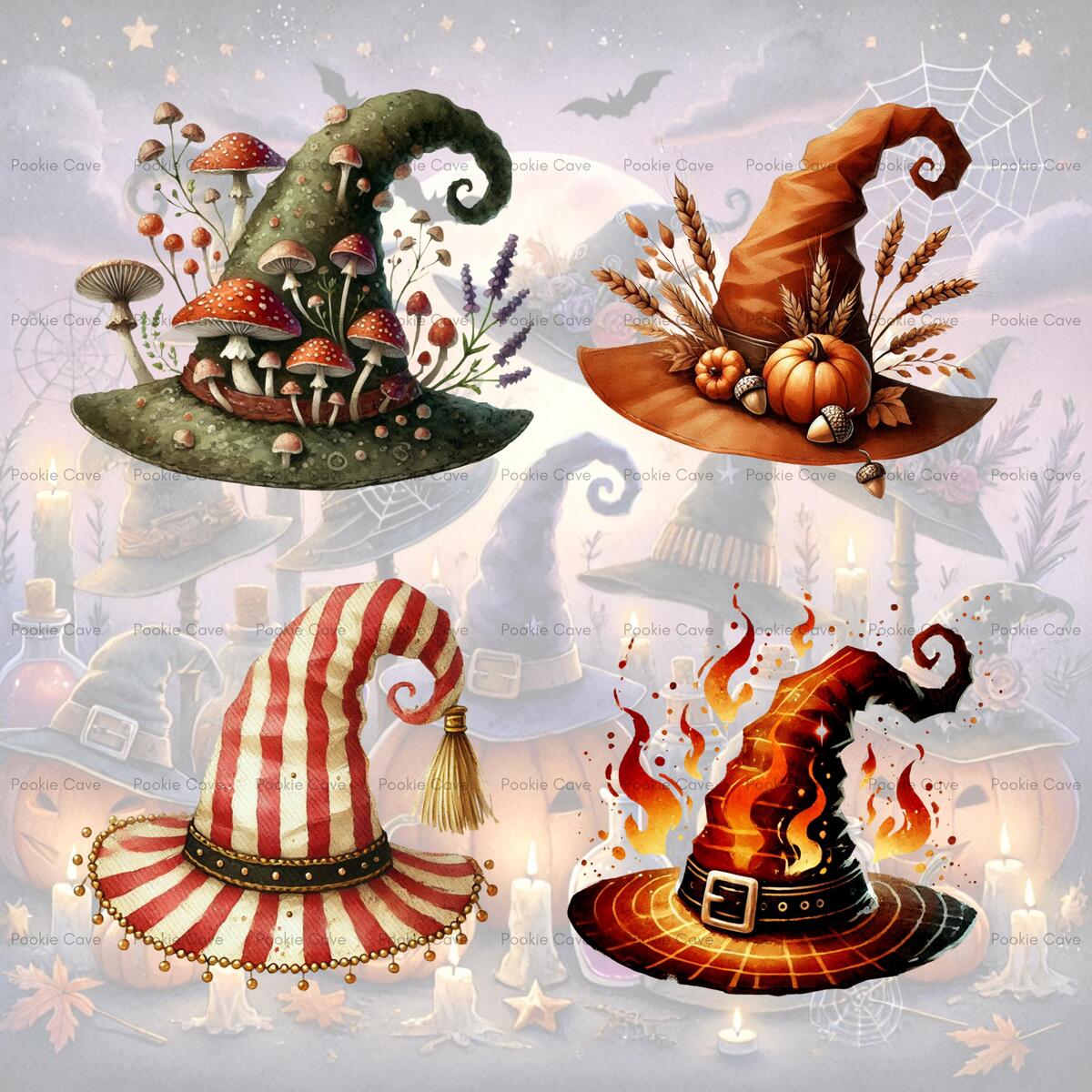 Watercolor Halloween Witch Hat Clipart - 20 PNG Illustrations (Digital Download)