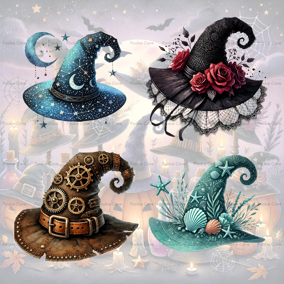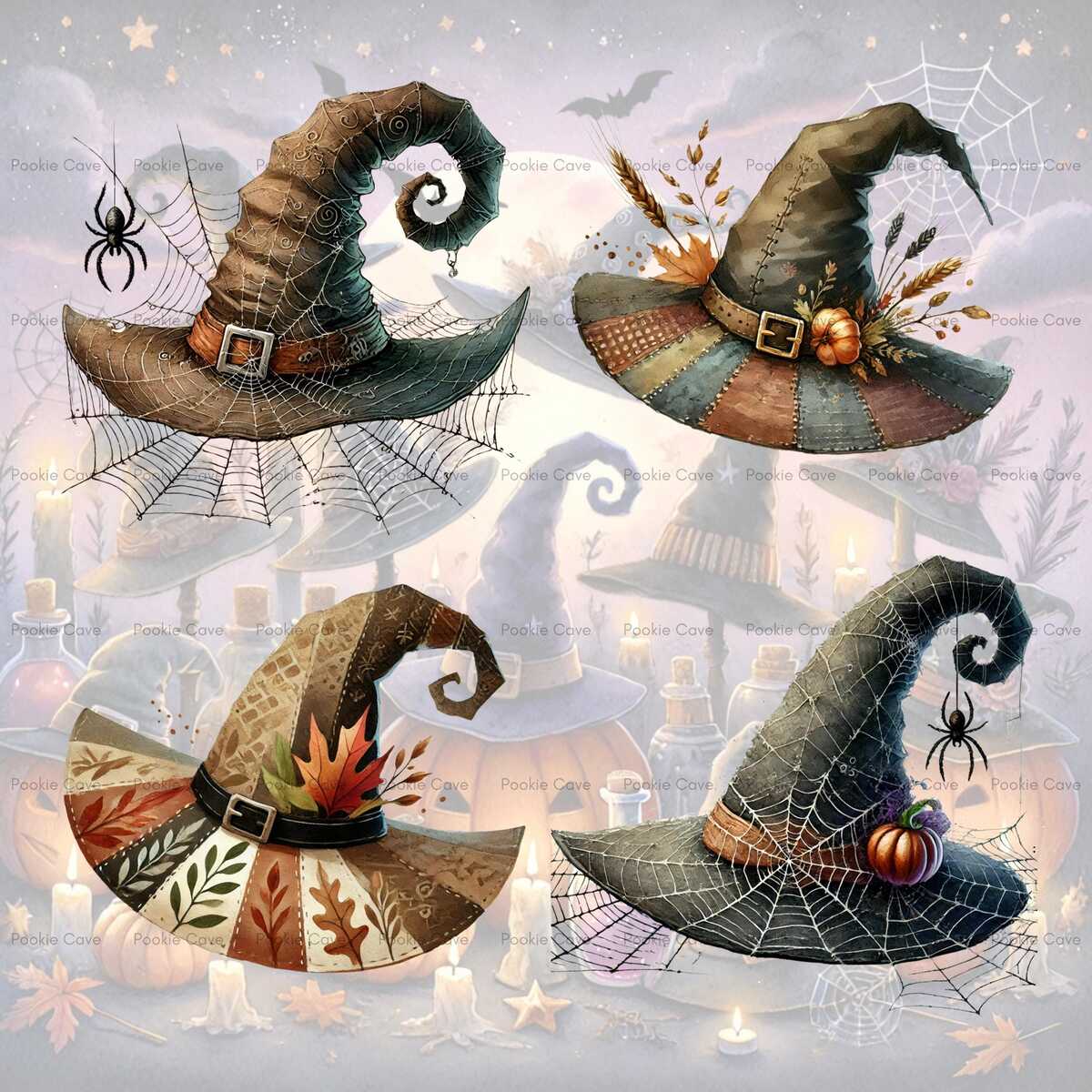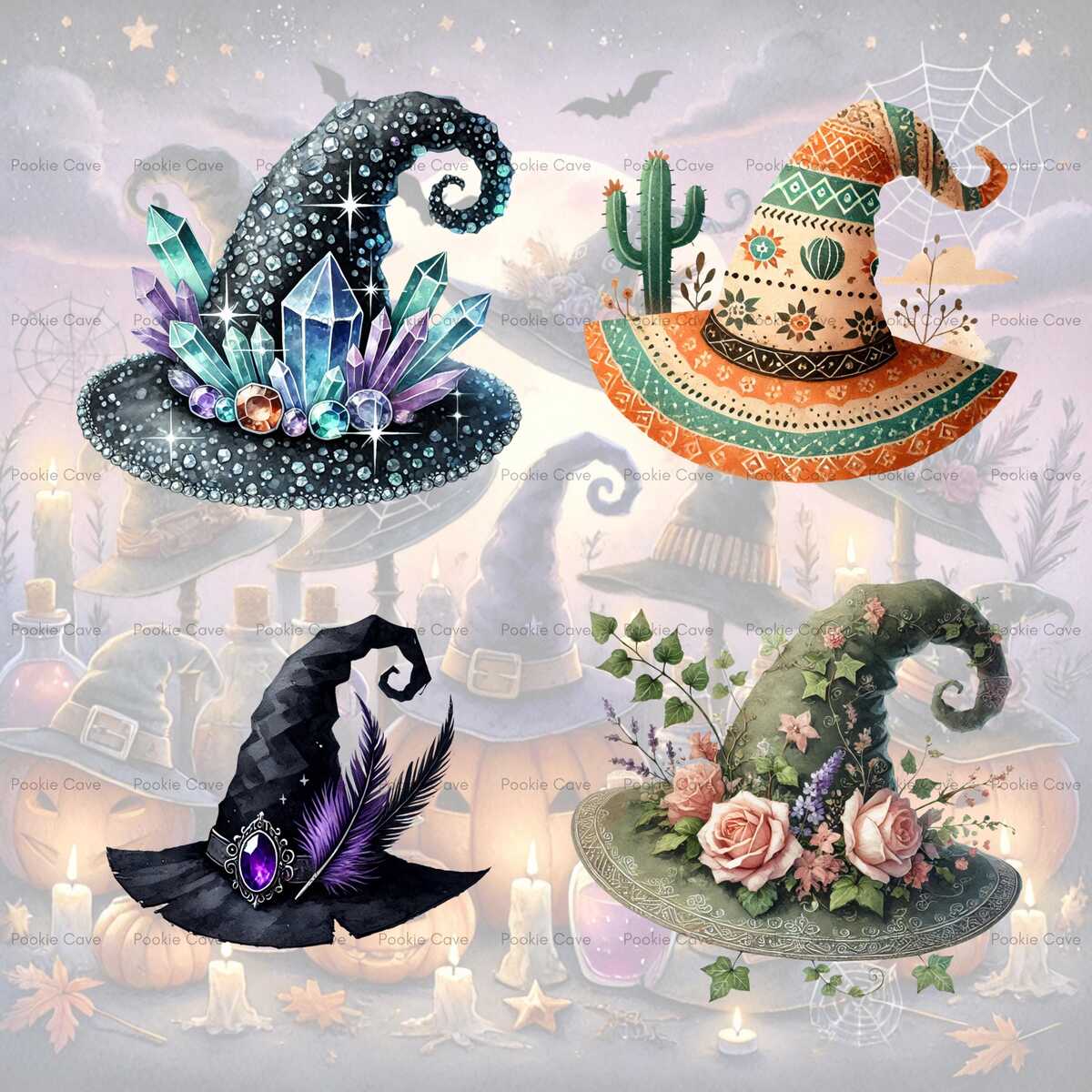 Watercolor Halloween Witch Hat Clipart - 20 PNG Illustrations (Digital Download)