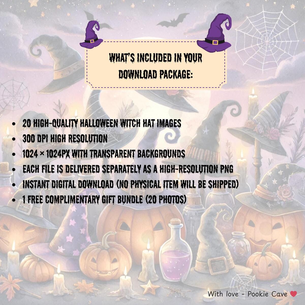 Bring a touch of spooky charm to your Halloween projects with this Watercolor Halloween Witch Hat Clipart Set! This bundle includes 20 high-quality PNG illustrations, each featuring unique witch hat designs painted in a soft watercolor style. Perfect for crafters, designers, and small business owners who want to add a magical vibe to their creations. ? What You’ll Receive: 20 unique Halloween Witch Hat illustrations High-resolution PNG files (300 DPI) Transparent background for easy layering Size: 10241024 px (ideal for digital and print use) Instant digital download — no physical product shipped ? Bonus Freebie: With your purchase, you’ll also get 1 extra Halloween Clipart Set (20 PNGs) completely free! That’s 40 PNGs total to make your creative projects even more magical. ? Perfect For: Halloween party invitations flyers Digital stickers planners Scrapbooking journaling Social media graphics printable wall art DIY decorations crafts ? How to Download After purchase, your digital files will be instantly available to download from your Bonanza order page and email confirmation. No physical item will be shipped. Files are available immediately after purchase in PNG format. No physical product will be shipped. Mockups shown are for presentation purposes only. ? License Use ?? Personal small business commercial use allowed ? Resale or redistribution of the files themselves is not permitted. ? Add a little witchy magic to your Halloween crafts today! halloween witch hat clipart, watercolor witch hat png, halloween clipart bundle, spooky watercolor graphics, witch hat illustrations, halloween digital download, halloween png set, halloween watercolor clipart, printable halloween art, witch hat stickers png, halloween sublimation designs, halloween scrapbook clipart, halloween party invitations png