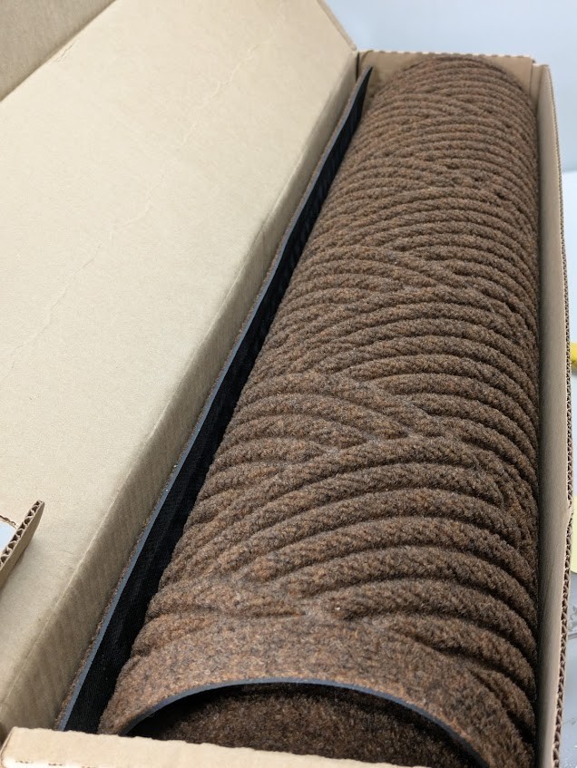 Green friendly rubber backing has 20 percent recycled rubber content