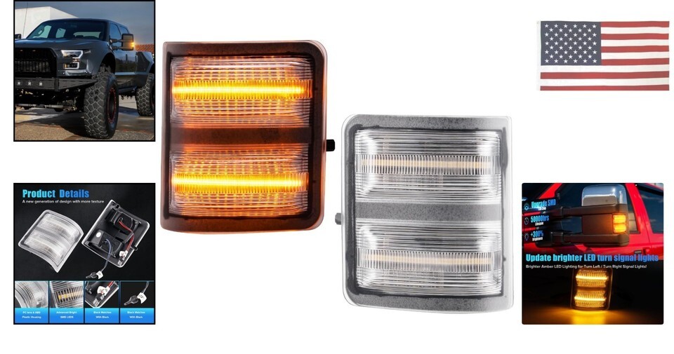 - Waterproof Amber LED Turn Signal Lights for 2008-2016 F250-F550 - Clear Lens