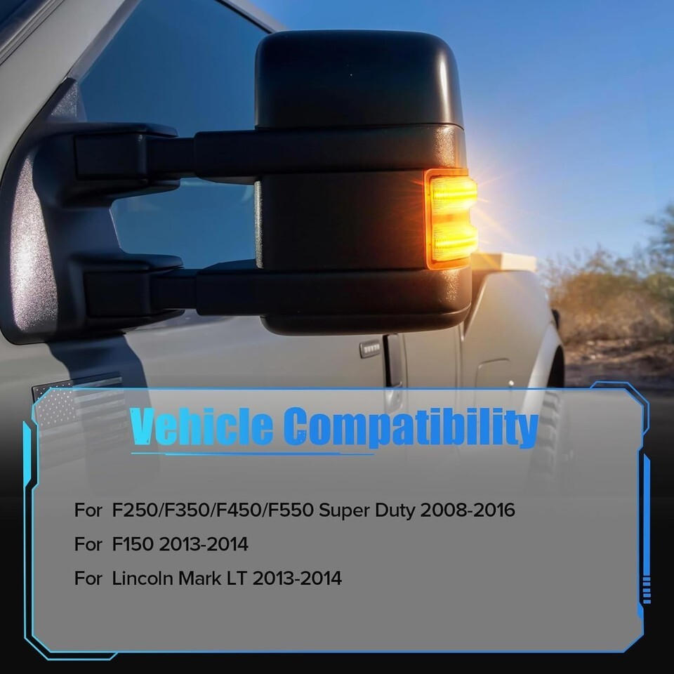 Applicable Models: Compatible with 2008-2016 F250, F350, F450, and F550 Super Duty. *(Only fits vehicles with factory OEM side mirrors.)*