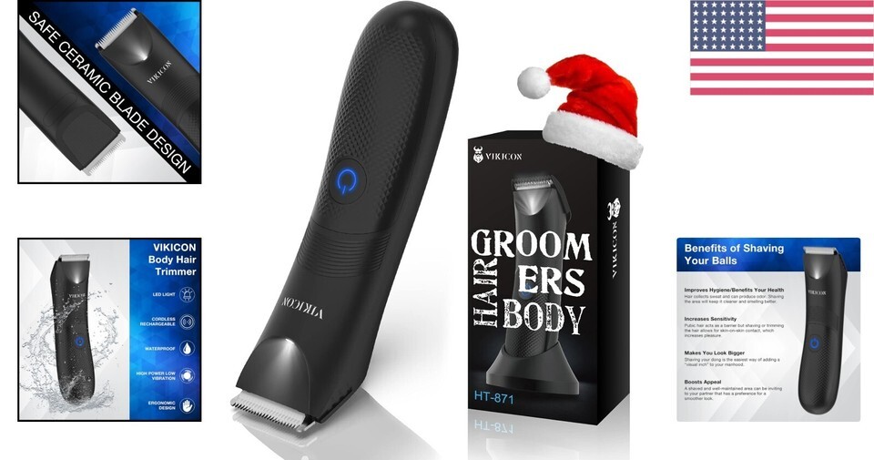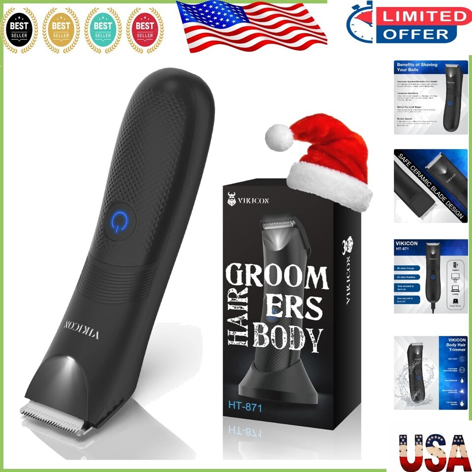 - Waterproof Manscape Trimmer for Men - Ceramic Blade Body Groomer with LED Light