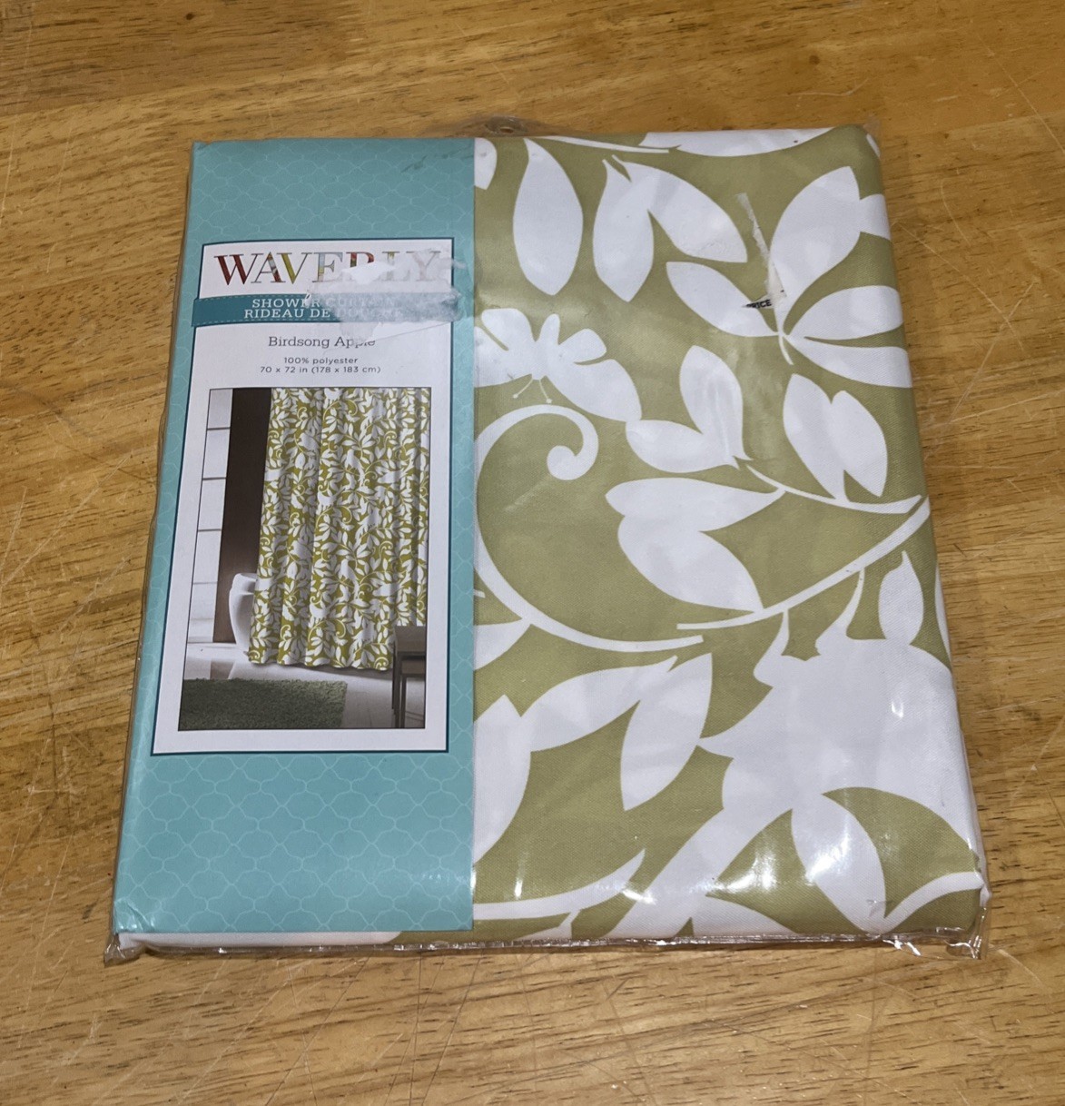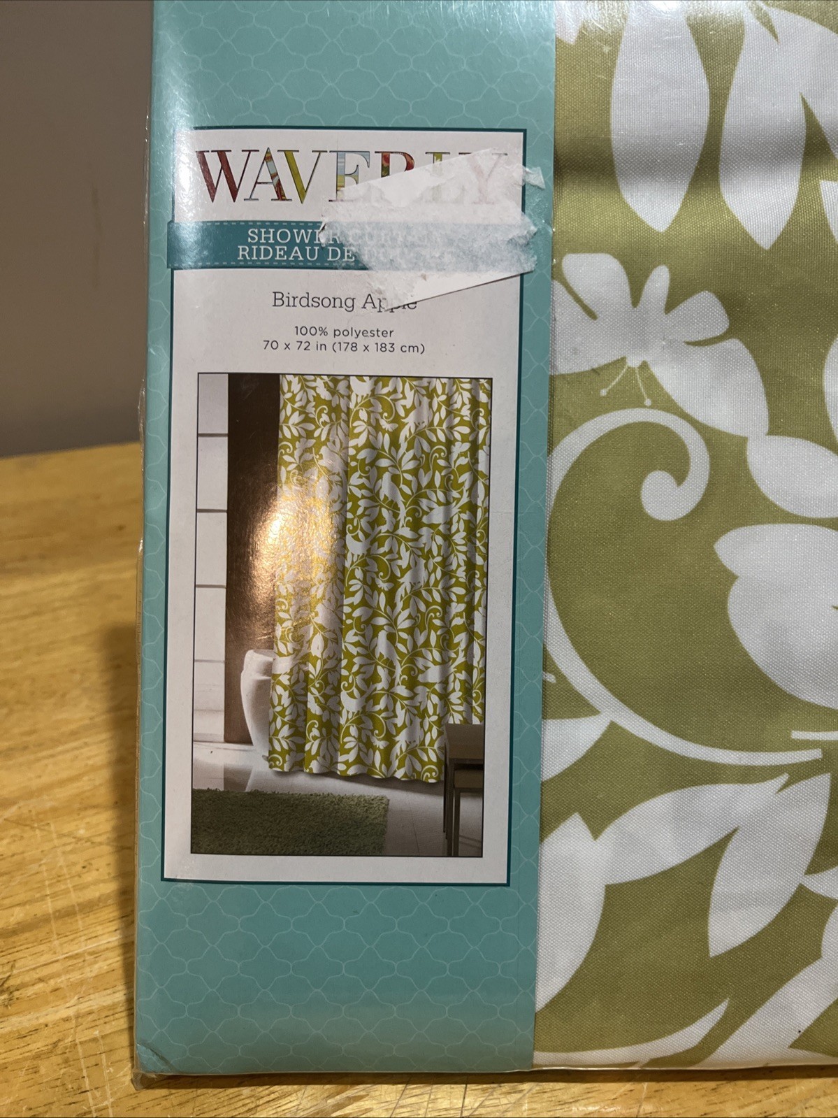 - Waverly Birdsong Apple Green Fabric Shower Curtain 70 x 72 Birds Leaves Modern
