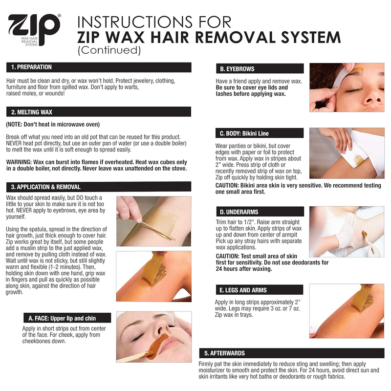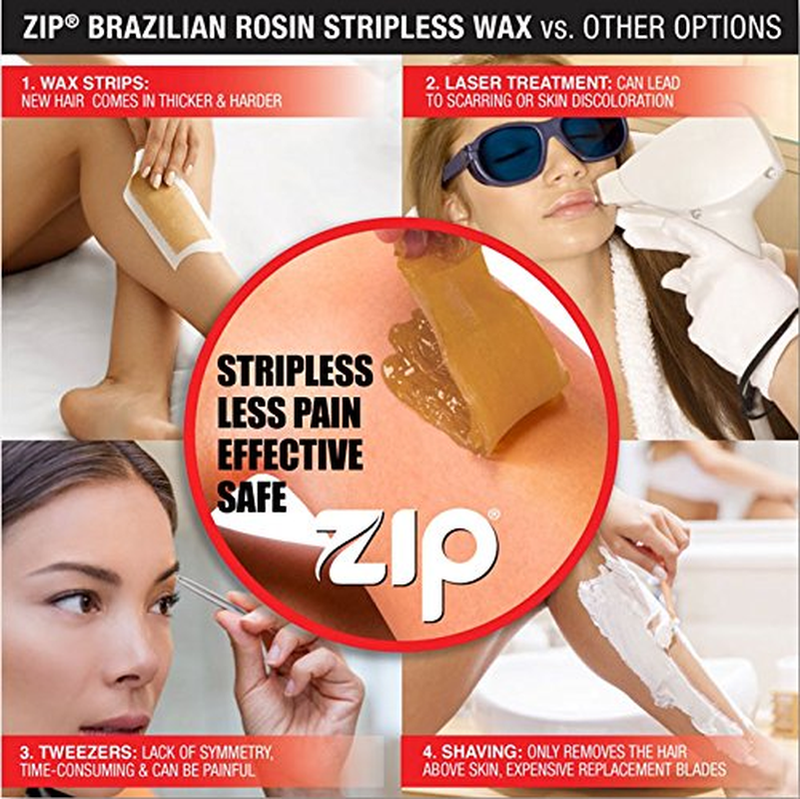 Zip is made of a hot film depilatory wax with Brazilian Rosin for unique flexibility.