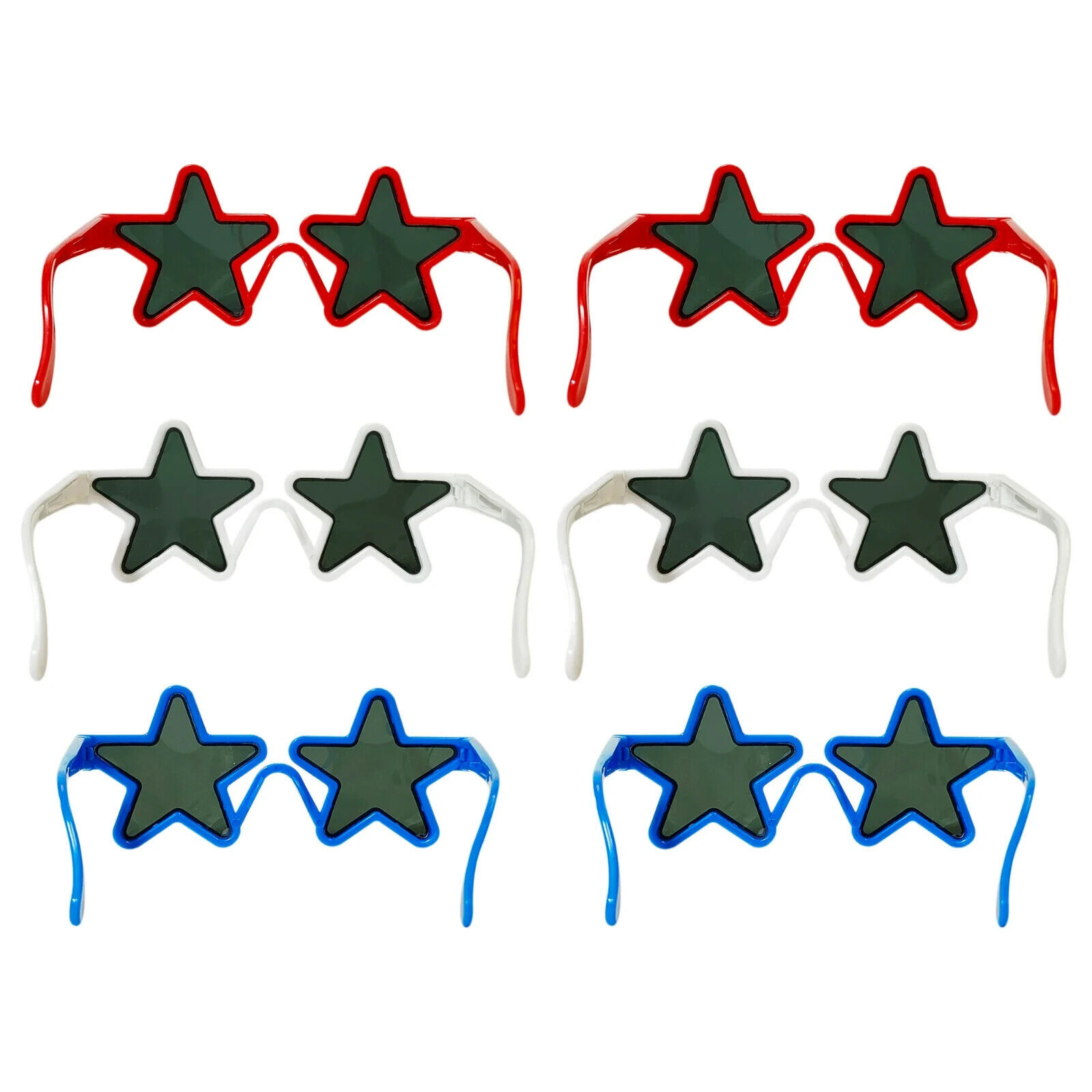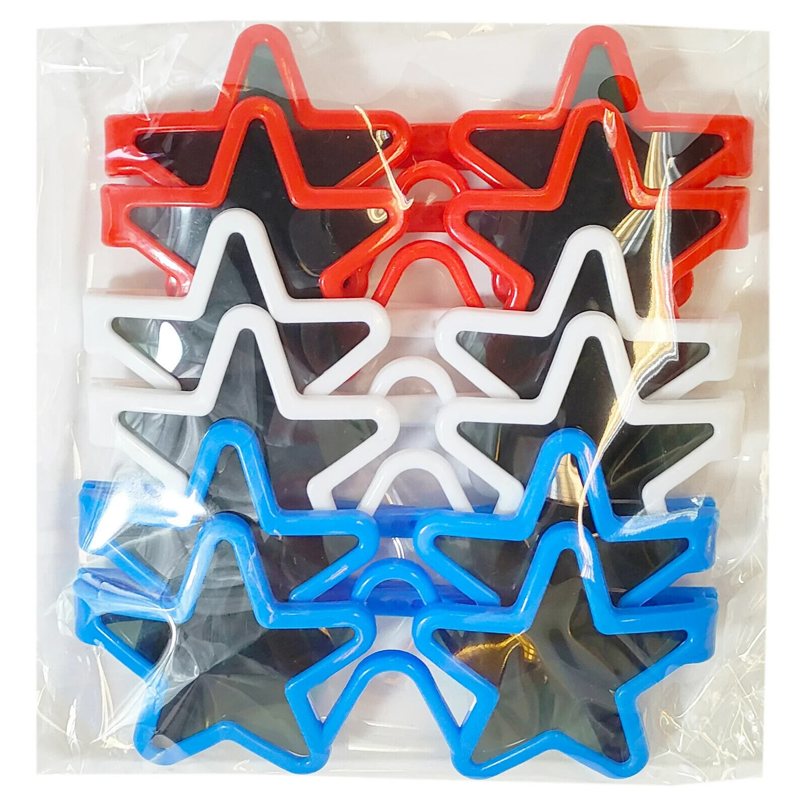 Enjoy the festivities this summer with the Way To Celebrate Patriotic Multi-Color Star Sunglasses. These star-shaped spectacles lend a vibrant and playful touch to your ensemble. The trio of red, white, and blue hues seamlessly blend with your Fourth of July accessories, creating an unrivaled patriotic ensemble. Whether you're hosting a backyard barbecue or admiring the fireworks at night, these glasses are the perfect accessory. This pack includes six sunglasses in patriotic colors, ideal for party favors or game prizes at your Independence Day celebration. Suitable for both children and adults, these glasses are a hit with everyone. Complete your festive attire with the Way To Celebrate Patriotic Multi-Color Star Sunglasses.