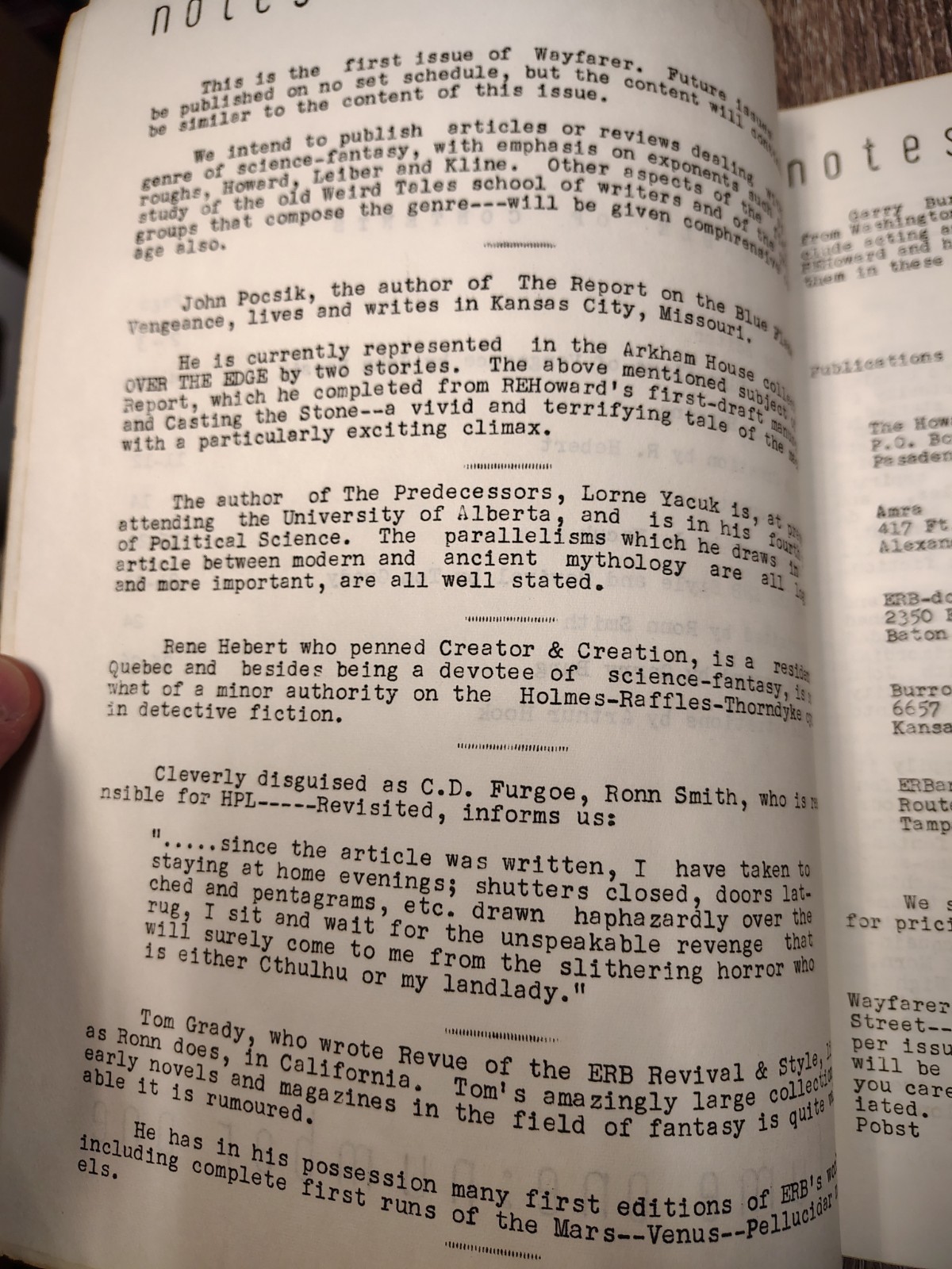 Wayfarer Fantasy Fanzine