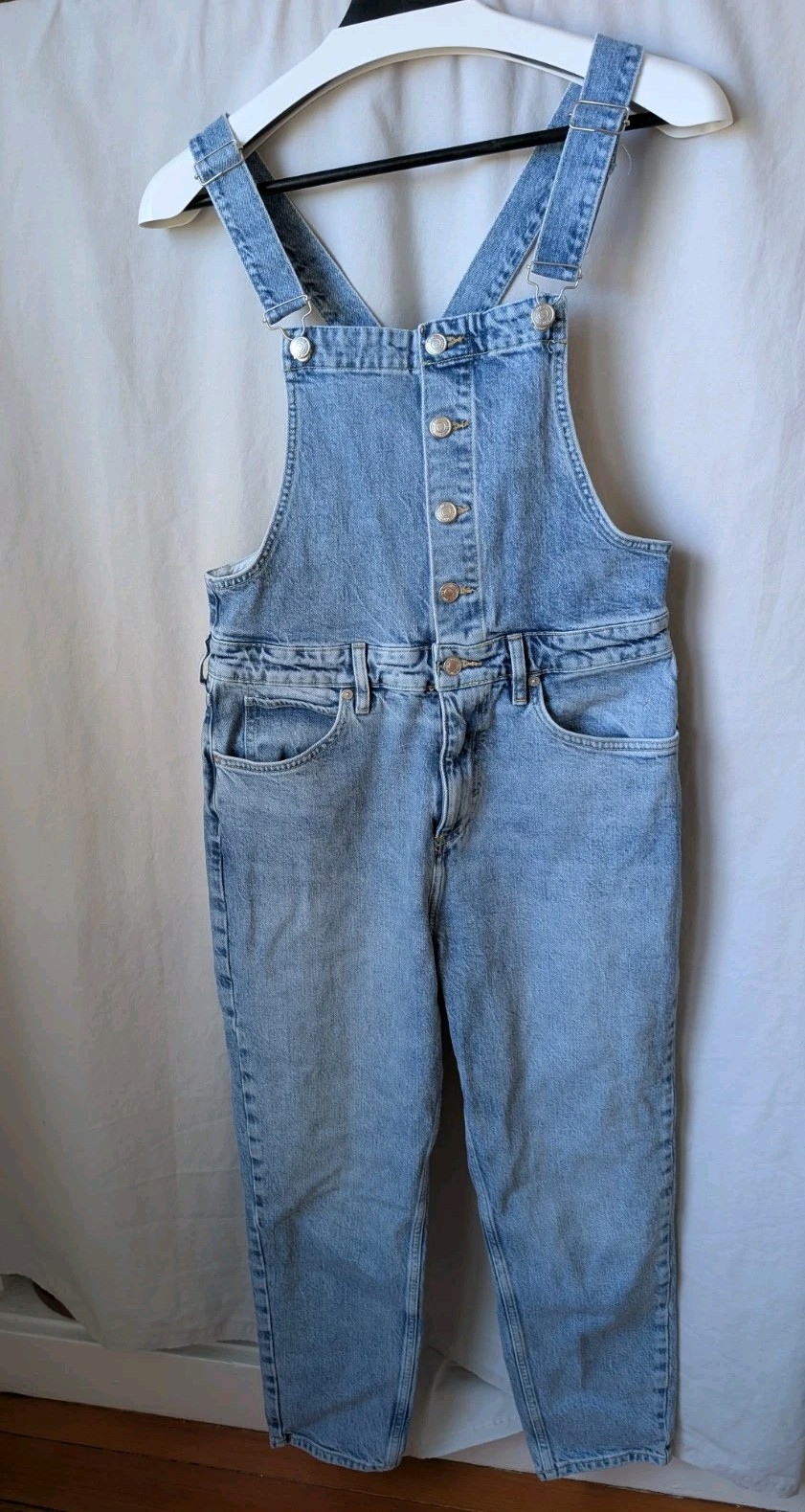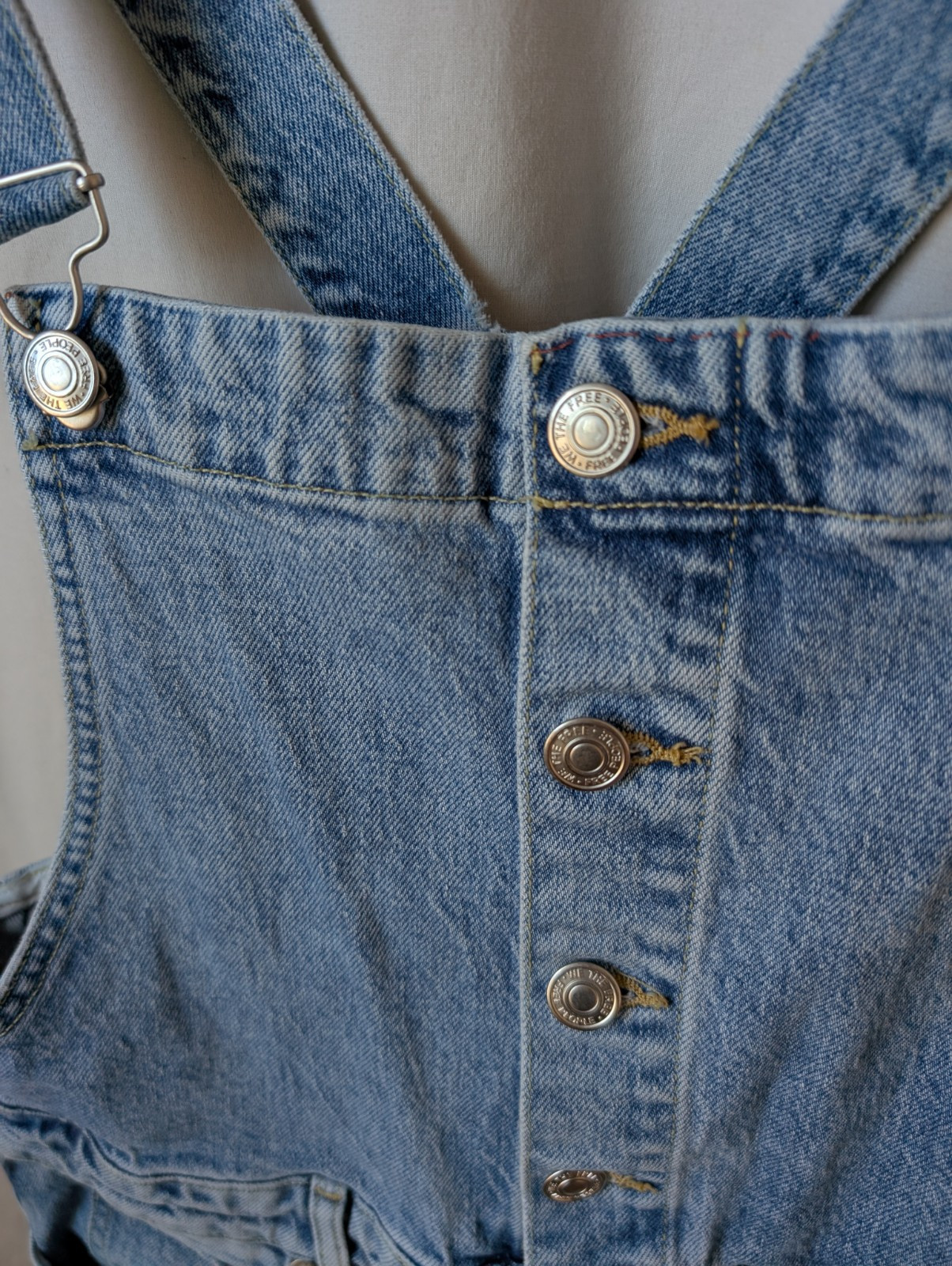 We The Free People 29 Shelby Denim Overalls Blue Jeans Button Front High Waisted