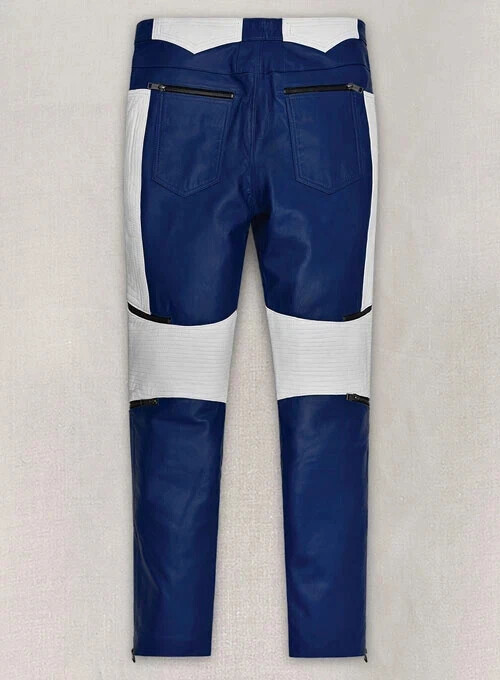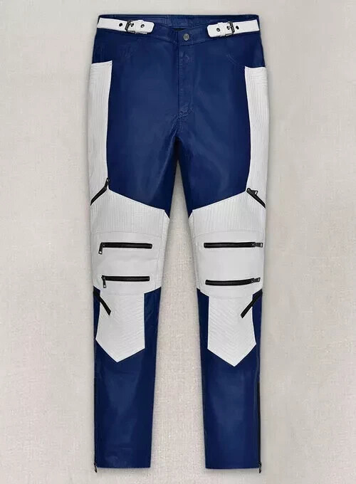 Wear Designer Zipper Men's Pant Blue Genuine Leather Lambskin Biker Stylish Fit\MN