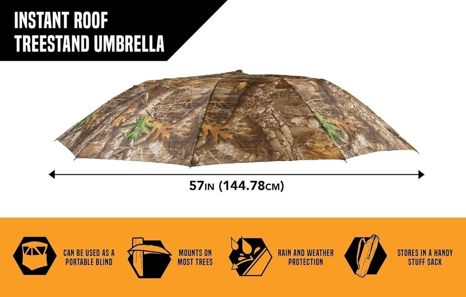 - Weather-Proof 57" Tree Stand Umbrella with Realtree Camo - Essential for Hunters