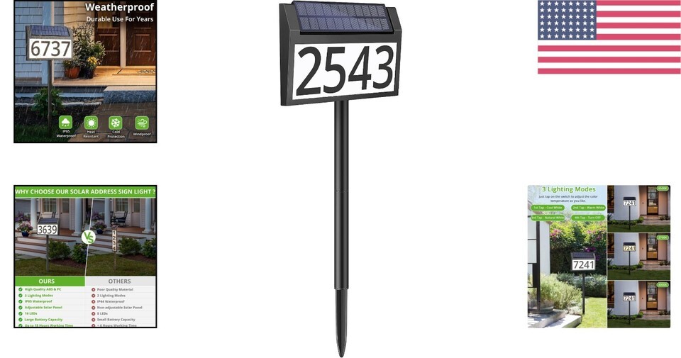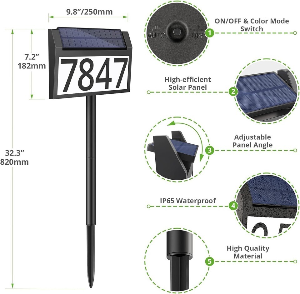 Illuminate your home with our Weather-Resistant Solar Address Sign, the perfect blend of style and functionality. With innovative LED technology, you can easily switch between different light colors to match your mood or decor. This unique design not only makes your address visible from afar but also enhances the beauty of your entryway.