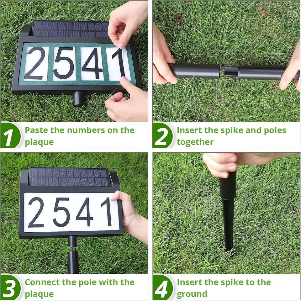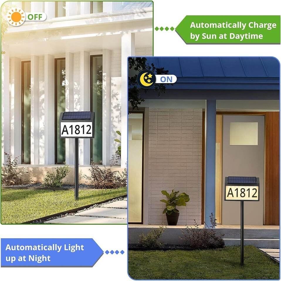 - Weather-Resistant Solar Address Sign with Adjustable Stakes - Light Up Your Home
