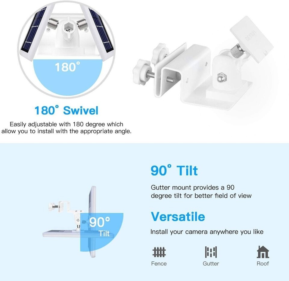 Widely Compatible: This universal solar panel gutter mount is compatible with a variety of solar panels, including Ring, Arlo, Eufy, Wyze, Reolink, and more.