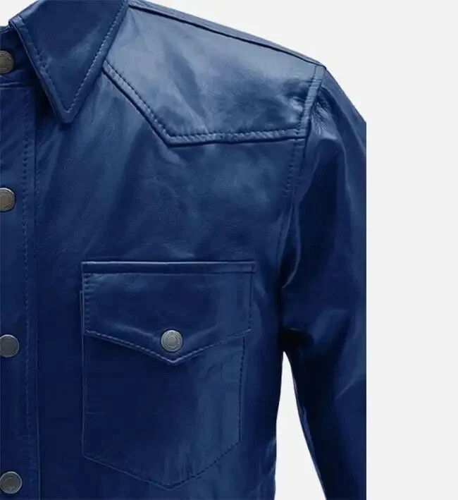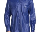 Weiche Partykleidung lassige Passform Herren Hemd blau handgefertigt Lammleder stilvoll echt\MN