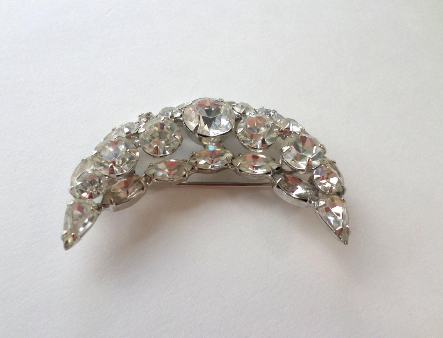 Weiss Crescent Moon Rhinestone Brooch Pin, 1958-59